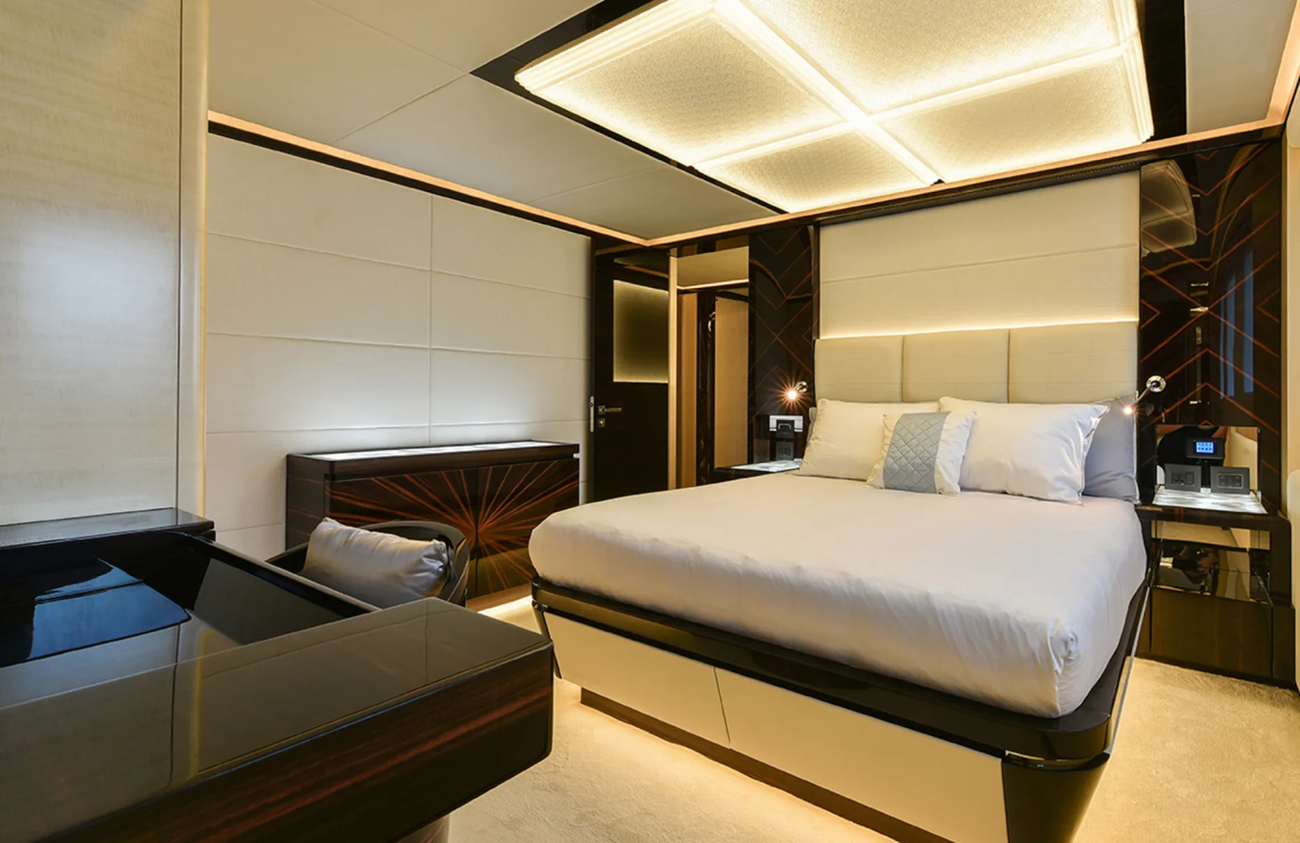 The ‘Ghost II’ accommodates up to 12 guests in five impeccably designed cabins, ensuring privacy and comfort for all aboard. The master suite exudes serenity, inviting you to wake up to the gentle lull of the ocean. Two double cabins offer understated elegance, while the twin cabins provide versatility for families and friends. With a combination of queen, double, single, and pullman beds, each room is a sanctuary with plush furnishings and thoughtful touches, promising restful nights and rejuvenating mornings.