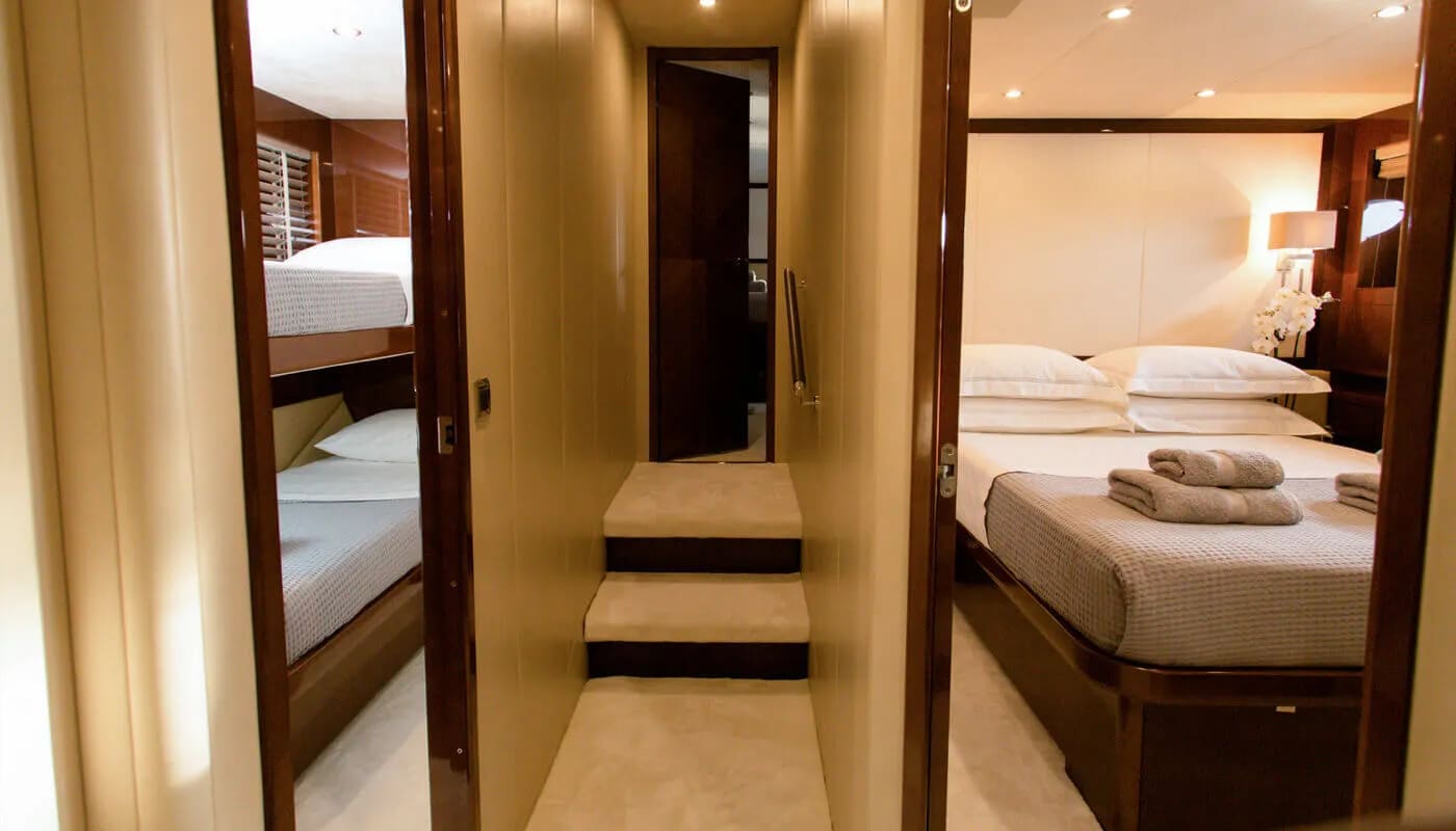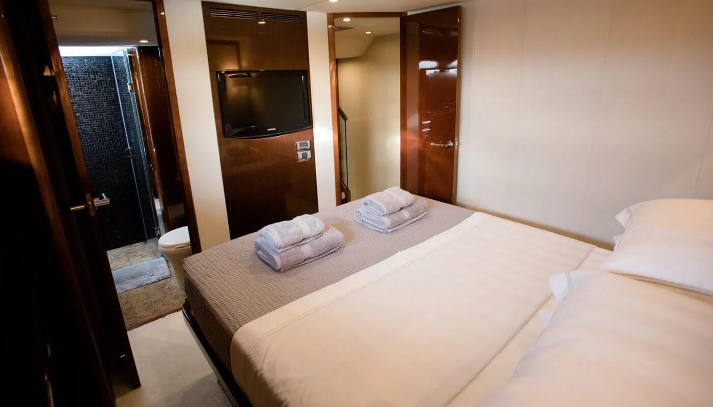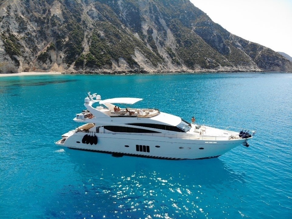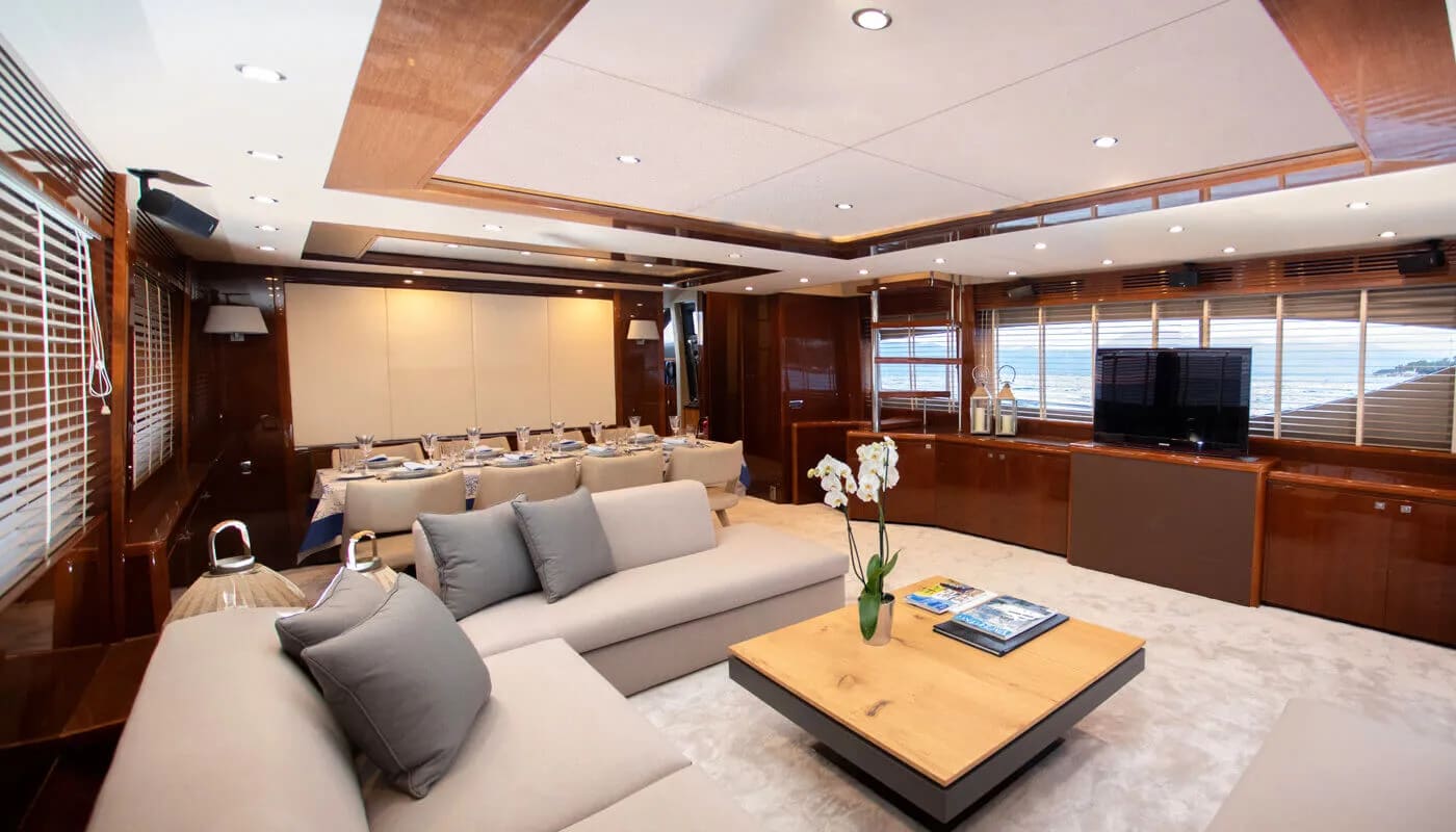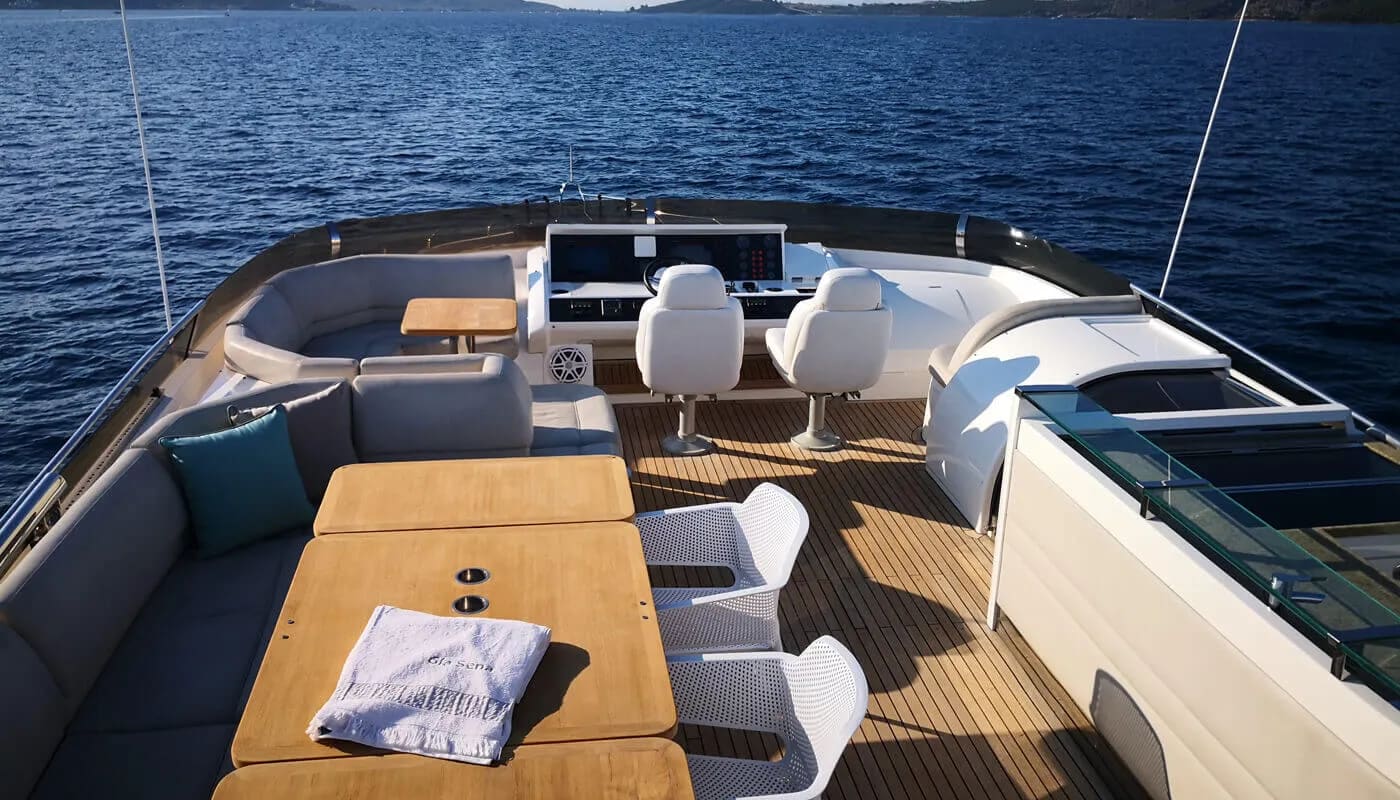 Step into a world of refined elegance aboard Gia Sena, a 26-meter masterpiece crafted by Princess. This stunning vessel, with her sleek lines and sophisticated styling, invites you to experience a seamless blend of performance and comfort. As you glide through the azure waters at a cruising speed of 22 knots, every moment is an opportunity to indulge in serenity or adventure. Imagine mornings spent sipping coffee on the sun-drenched deck, afternoons exploring hidden coves, and evenings dining under the stars. With a range reaching up to 650 nautical miles, Gia Sena beckons you to discover new horizons, from bustling coastal towns to tranquil, secluded bays.