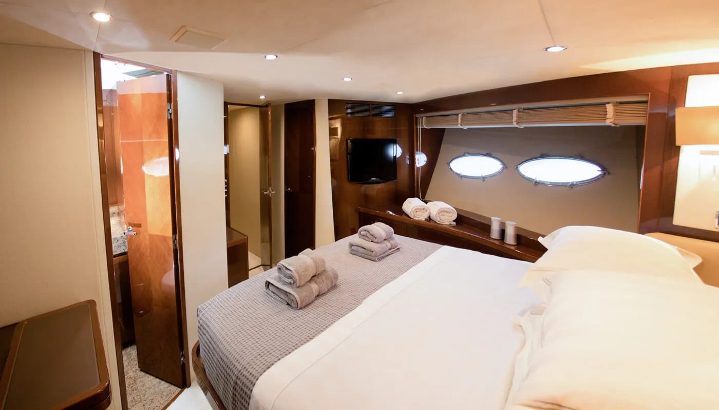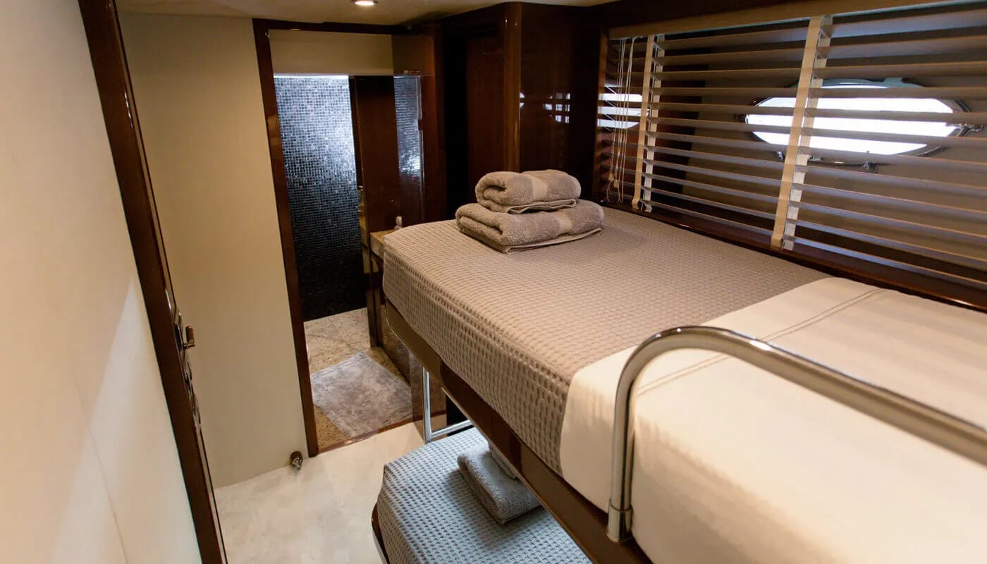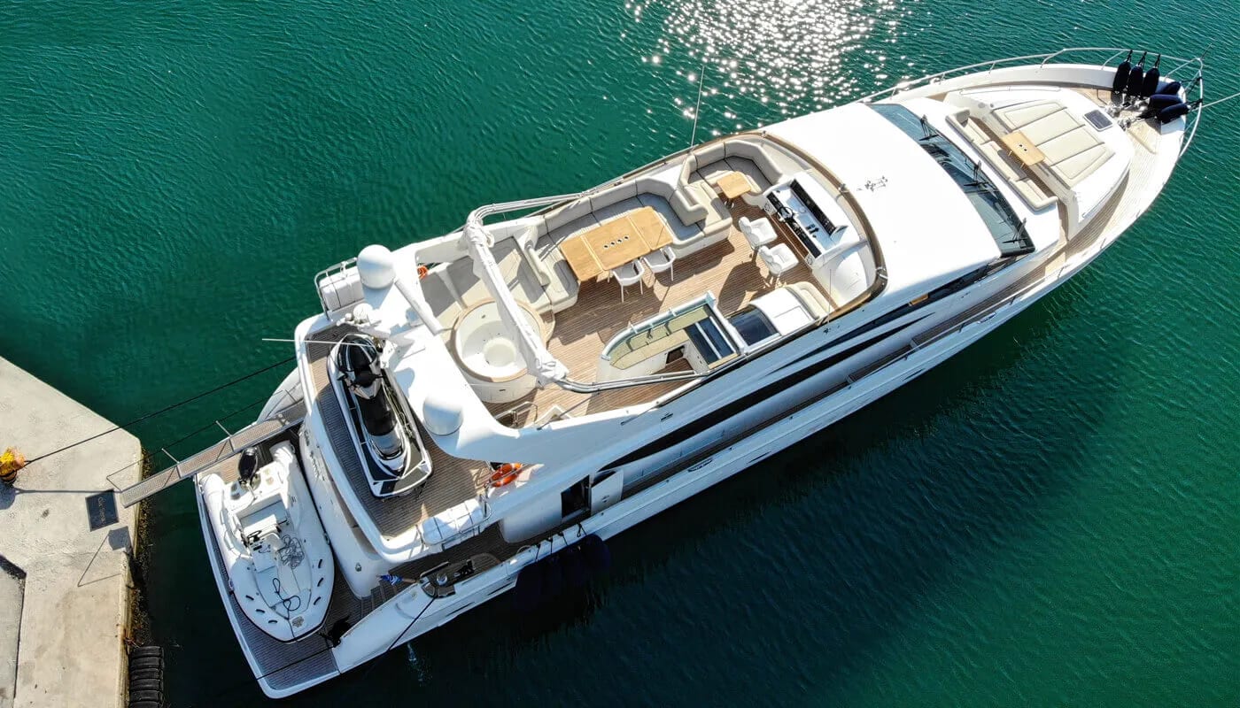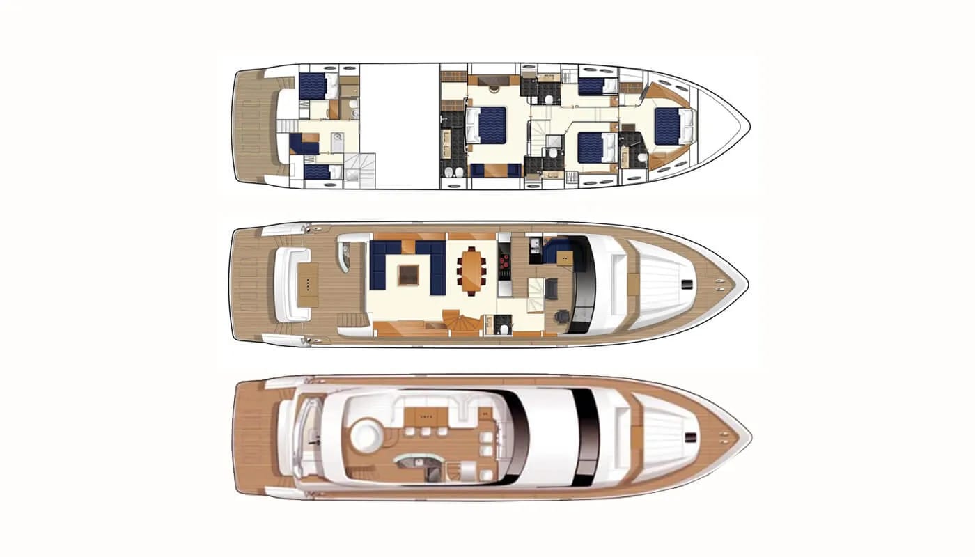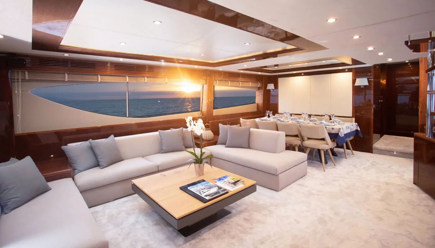 Step into a world of refined elegance aboard Gia Sena, a 26-meter masterpiece crafted by Princess. This stunning vessel, with her sleek lines and sophisticated styling, invites you to experience a seamless blend of performance and comfort. As you glide through the azure waters at a cruising speed of 22 knots, every moment is an opportunity to indulge in serenity or adventure. Imagine mornings spent sipping coffee on the sun-drenched deck, afternoons exploring hidden coves, and evenings dining under the stars. With a range reaching up to 650 nautical miles, Gia Sena beckons you to discover new horizons, from bustling coastal towns to tranquil, secluded bays.