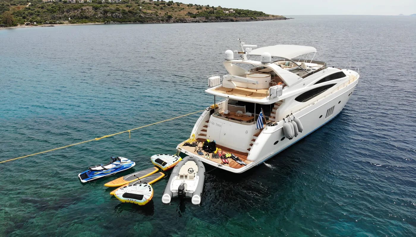 Step into a world of refined elegance aboard Gia Sena, a 26-meter masterpiece crafted by Princess. This stunning vessel, with her sleek lines and sophisticated styling, invites you to experience a seamless blend of performance and comfort. As you glide through the azure waters at a cruising speed of 22 knots, every moment is an opportunity to indulge in serenity or adventure. Imagine mornings spent...