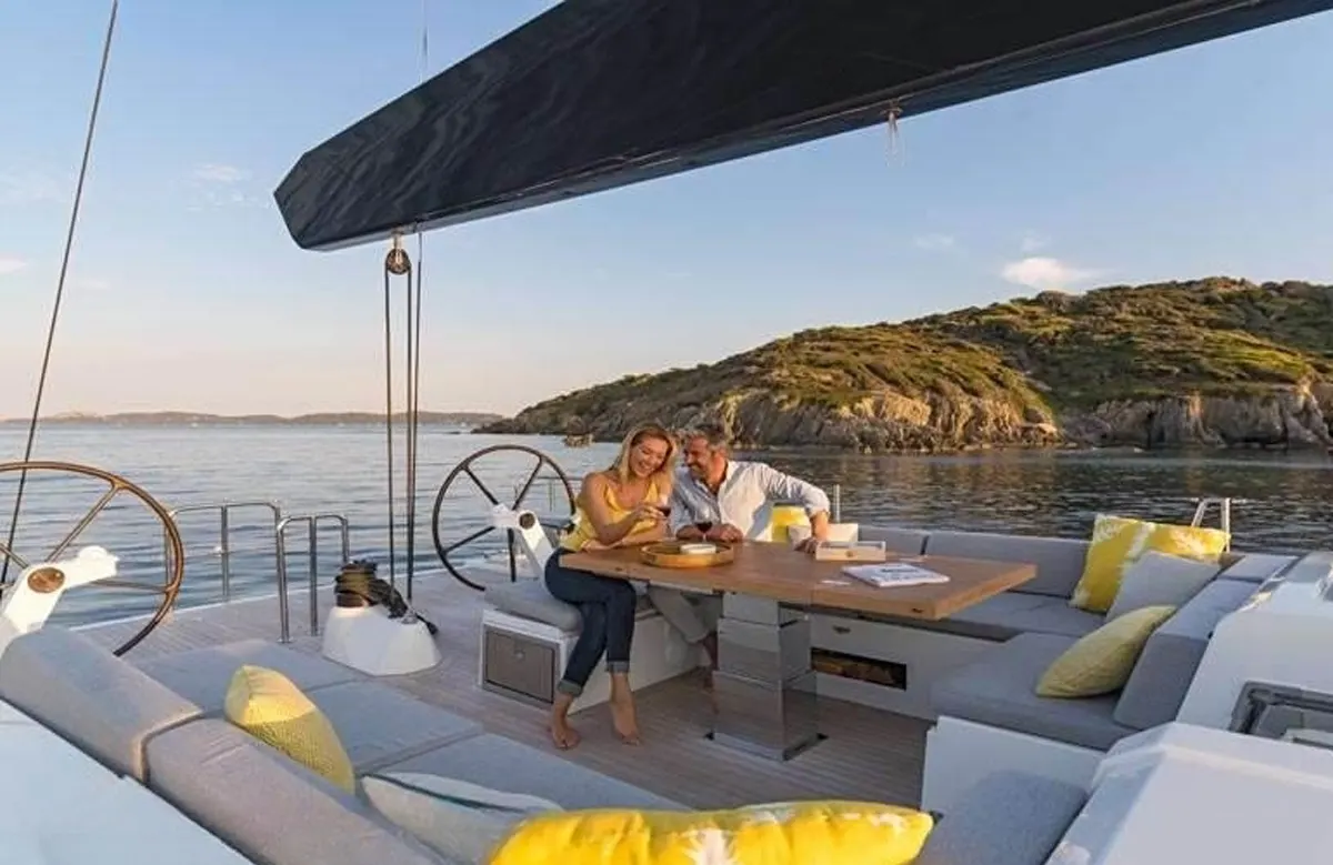 The onboard experience of Gigi Of Lymington is one of seamless comfort and sophistication. As the sun dips below the horizon, guests gather on the expansive deck, perhaps enjoying a meal prepared on the BBQ or reclining on the sunpads with a refreshing drink in hand. The climate-controlled interiors provide a cool refuge from the midday sun, while Wi-Fi connectivity keeps you as connected or as blissfully disconnected as you desire. The outdoor shower offers a refreshing cleanse after a swim, ensuring that every moment is one of pure indulgence.