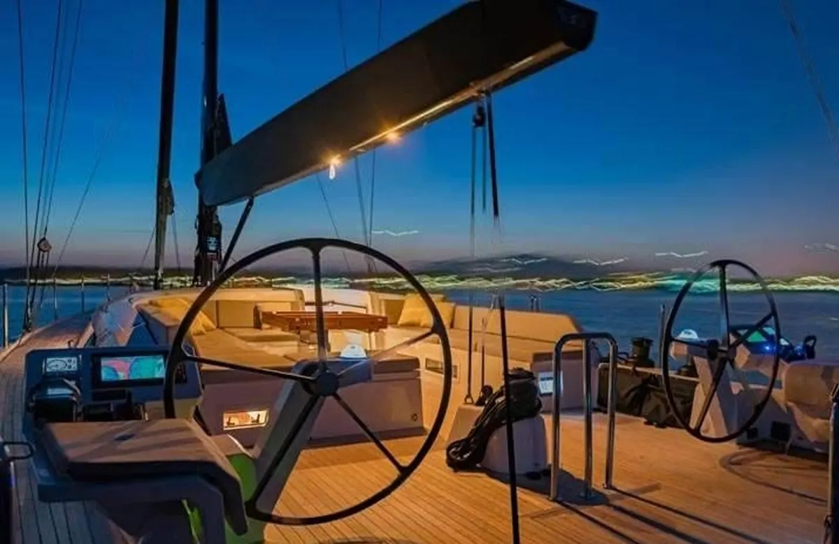 Gigi Of Lymington offers an exquisite sailing experience, inviting you to indulge in the artful harmony of elegance and adventure. Crafted by the renowned CNB shipyard and graced with the design finesse of Philippe Briand, this 21-meter vessel promises not just a journey, but a passage into another world. As you sail across azure waters, the gentle hum of Volvo engines propels you at a serene pace of 8 knots, setting the stage for both relaxation and exploration. Each day aboard Gigi Of Lymington unfolds with a unique blend of discovery and repose, offering opportunities to explore secluded beaches or simply bask in the sun-drenched tranquility of the deck.