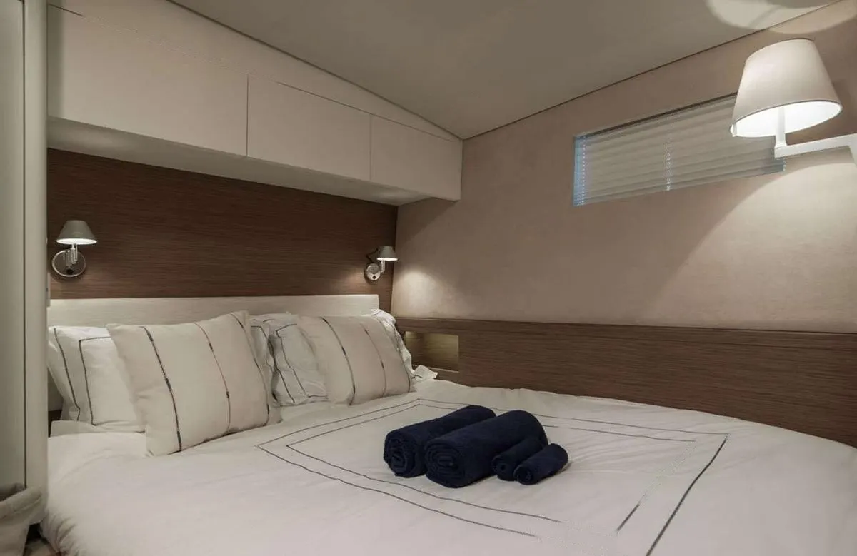 Accommodating up to six guests, Gigi Of Lymington offers a sanctuary of rest with three beautifully appointed cabins. The master suite, VIP cabin, and twin cabin are havens of serenity, where the gentle rocking of the sea lulls you into a peaceful slumber. Each morning, awaken to the soft glow of sunlight filtering through the portholes, inviting you to step out and embrace another day of maritime adventure and leisure.