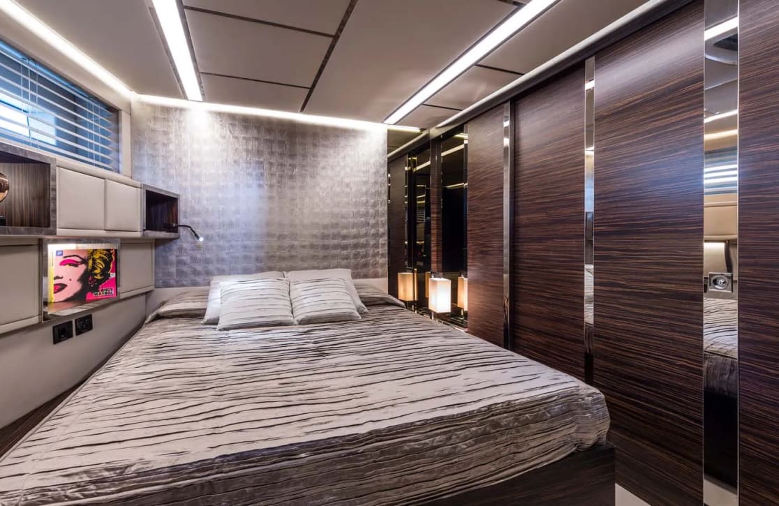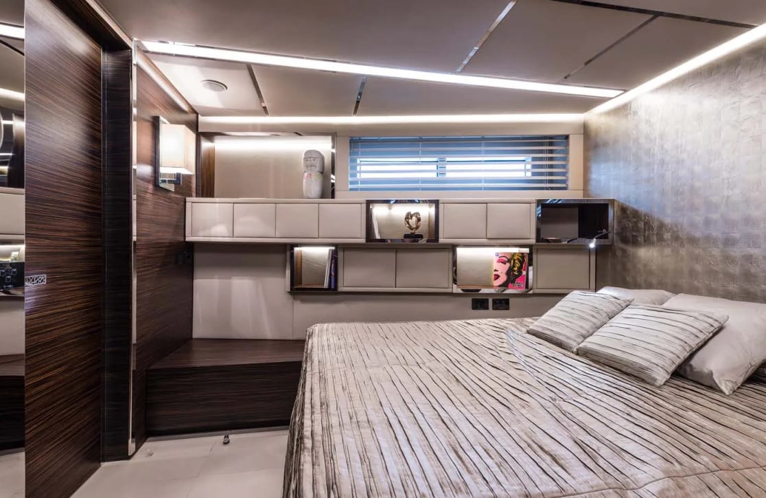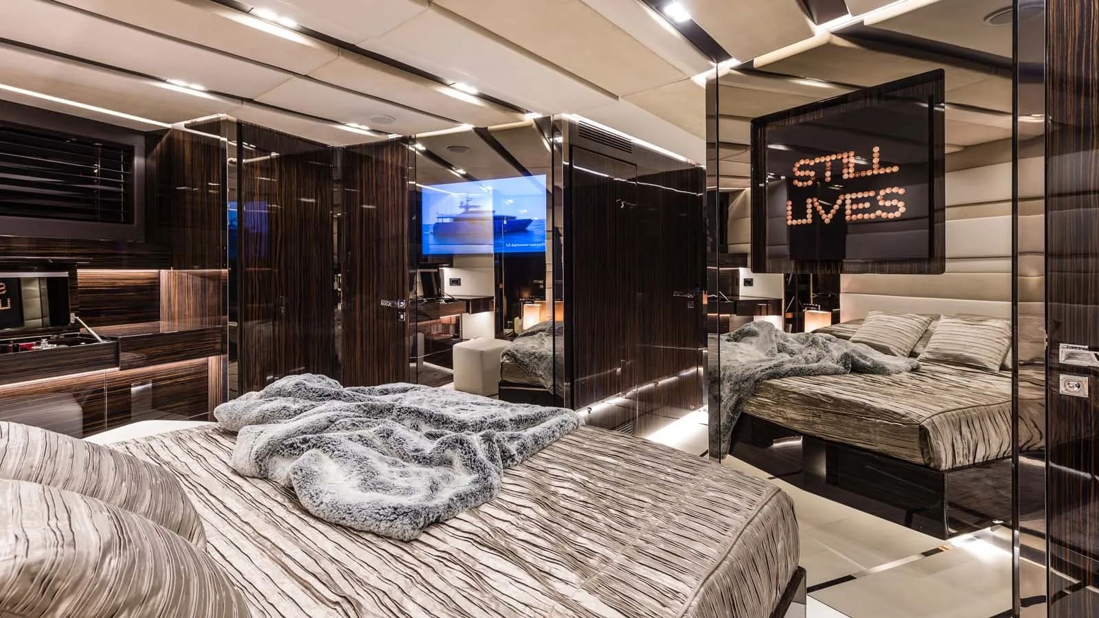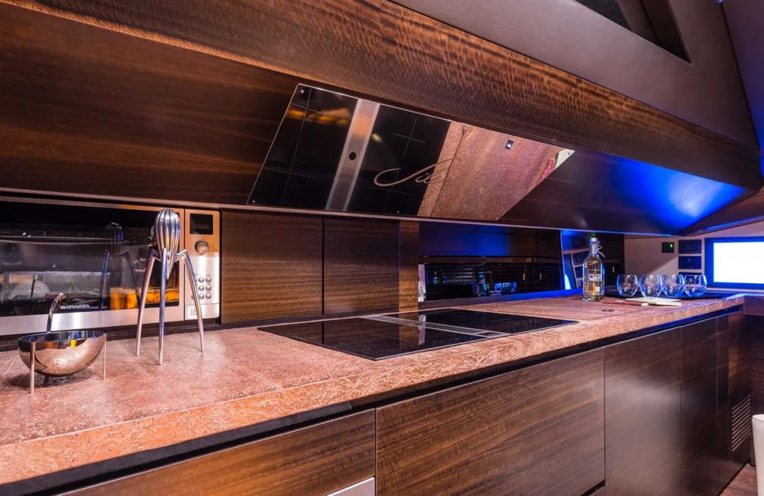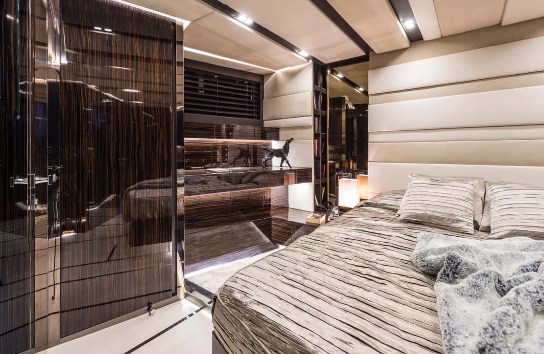 Gigreca welcomes up to eight guests into its beautifully appointed quarters, where restful nights and refreshing mornings await. The master suite offers a haven of tranquility, complemented by a VIP cabin, a double cabin, and a twin cabin, each designed with exquisite attention to detail. Wake up to the gentle lull of the waves and the promise of a new day’s adventures, enveloped in the comfort and elegance that only a yacht of this caliber can provide.