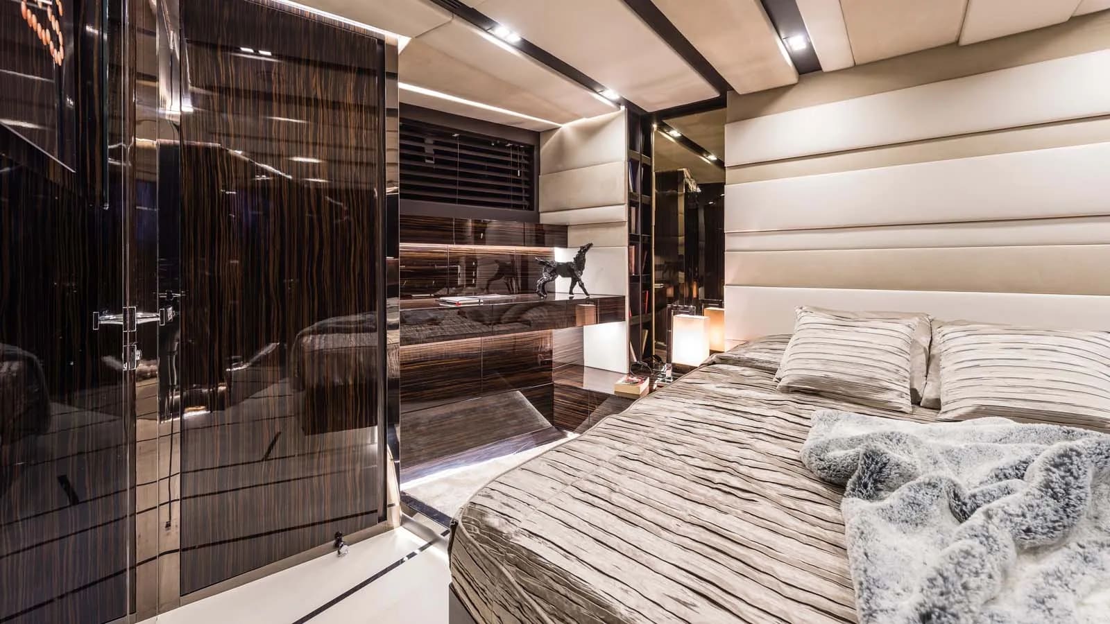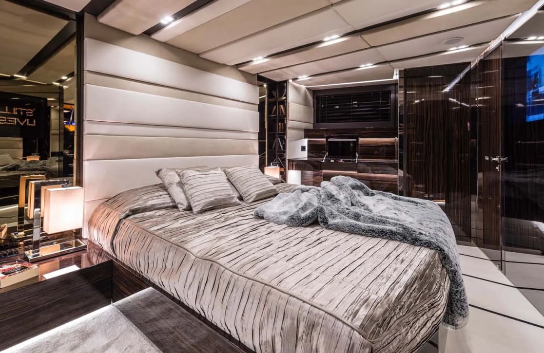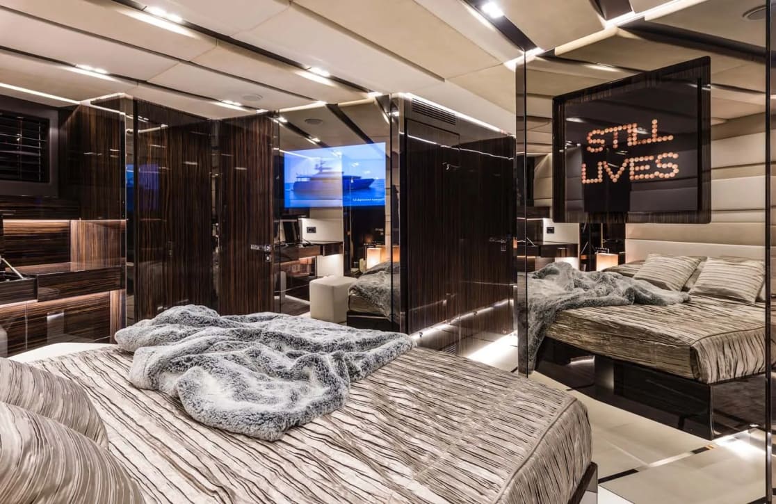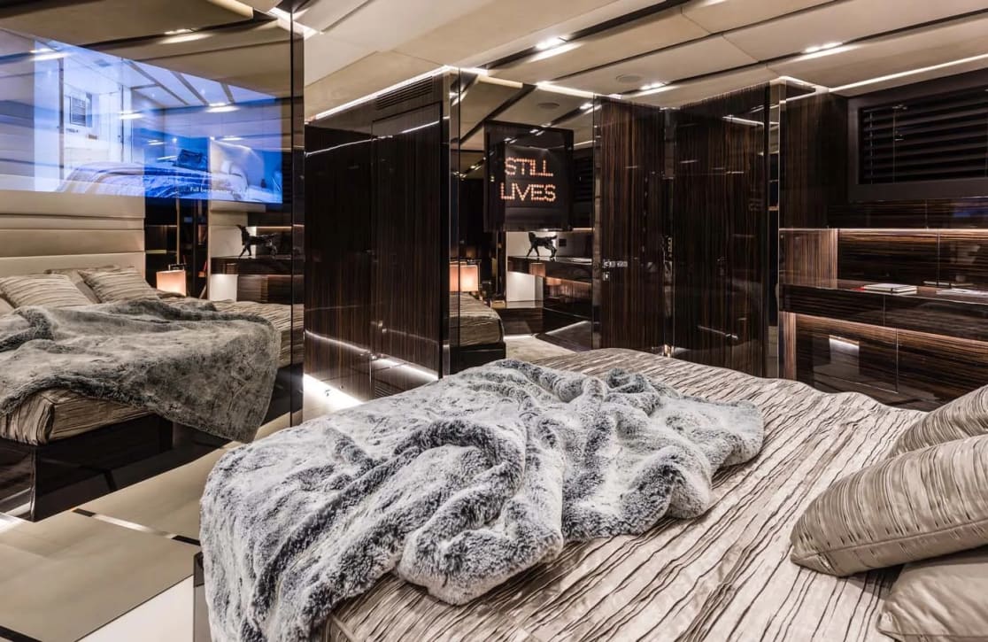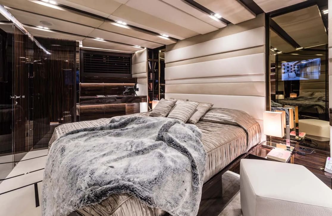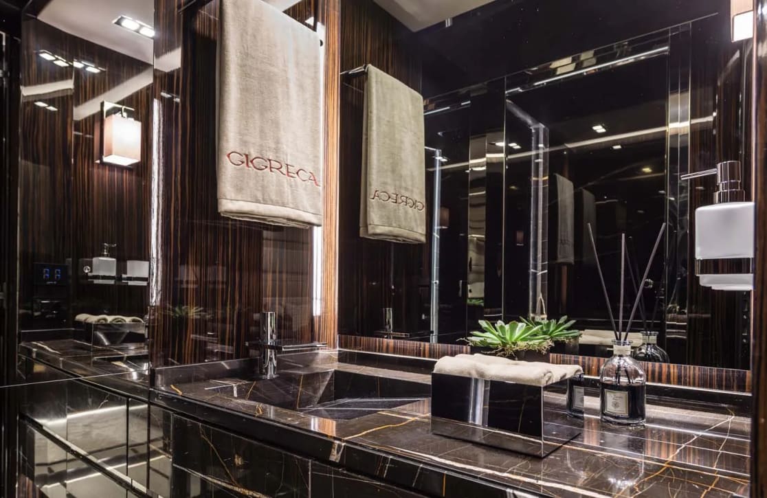 Aboard Gigreca, every detail is curated for your pleasure. As the sun dips below the horizon, the yacht’s underwater lights cast a magical glow, transforming evenings into enchanting affairs. The interior spaces are meticulously designed by Admiral Yachts, ensuring a seamless flow between relaxation and entertainment. With advanced air conditioning, your comfort is assured in every climate, allowing you to fully immerse yourself in the serene ambiance of the open sea.