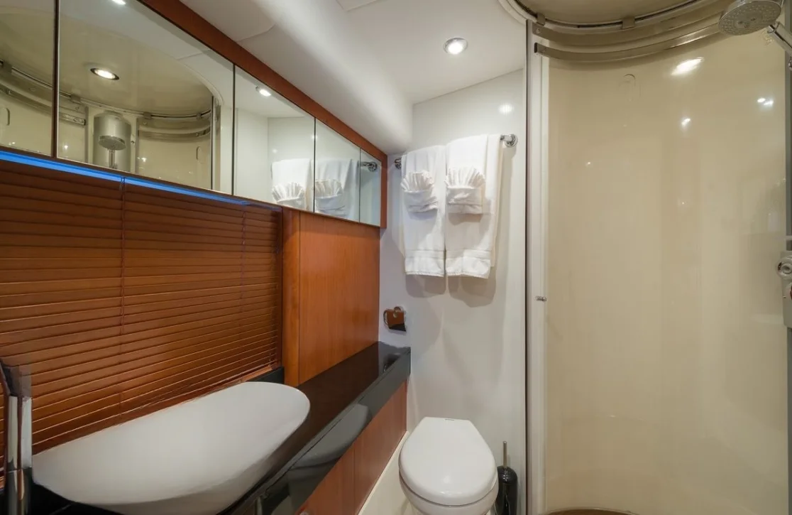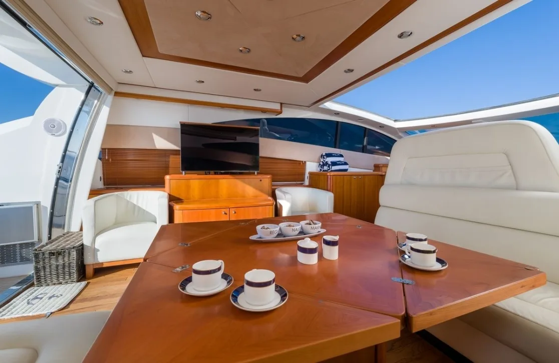 Onboard ‘Glorious,’ every moment is designed to indulge your senses. The yacht’s air-conditioned interiors provide a cool retreat from the midday sun, where you can relax in style or entertain guests with ease. Picture evenings spent dining alfresco on the deck, the setting sun painting the sky as you enjoy exquisite meals crafted to your taste. The hydraulic swim platform beckons, offering effortless access to the azure waters, while an outdoor shower awaits to refresh you after a swim. Whether lounging in the sun or gathering with friends, every space on ‘Glorious’ is a testament to comfort and elegance.