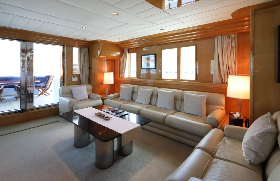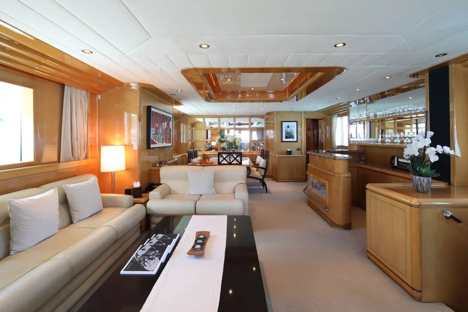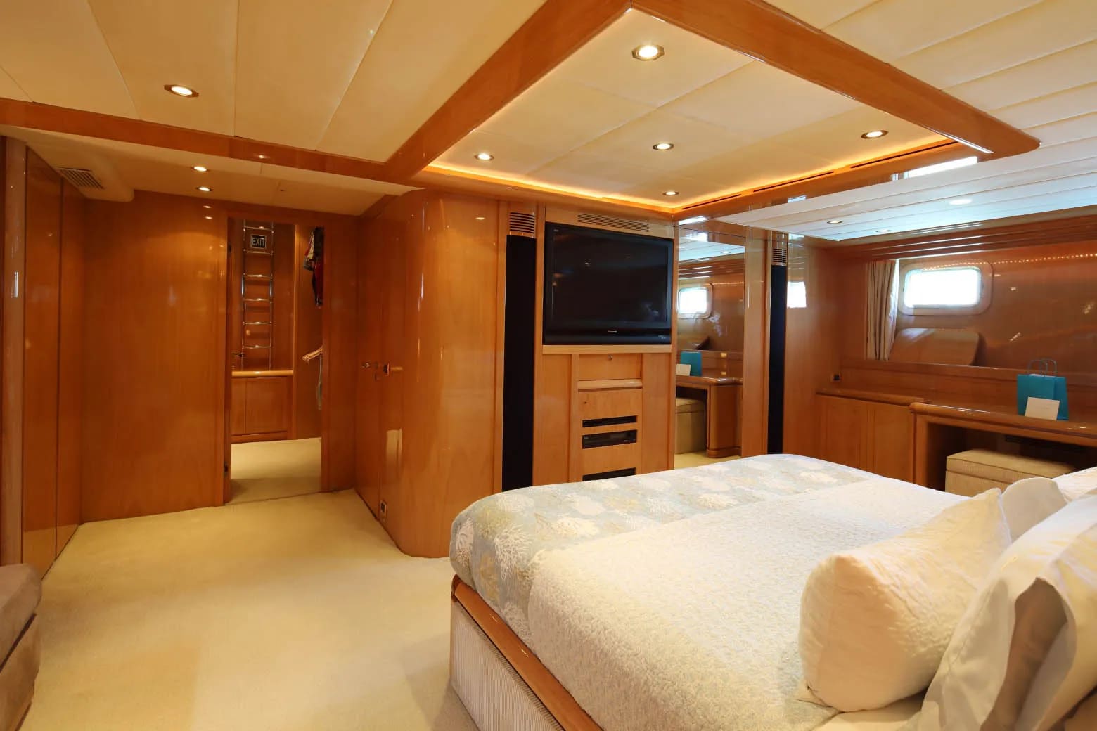 Indigo is designed to host up to seven guests in complete tranquility. Her three sumptuous cabins offer the perfect retreat after a day of exploration and indulgence. Each room is a sanctuary of comfort, where you can awaken to the gentle rocking of the sea and fall asleep under a blanket of stars. The attention to detail extends to the plush linens and thoughtful design, ensuring that every aspect of your stay is as restful as it is memorable. With a crew of six at your service, the experience aboard Indigo is both intimate and refined, allowing you to fully immerse yourself in the joy of yachting life.