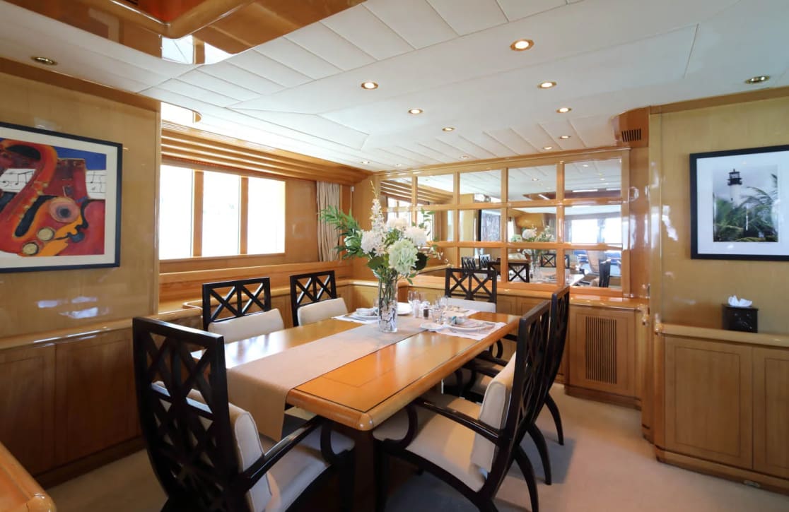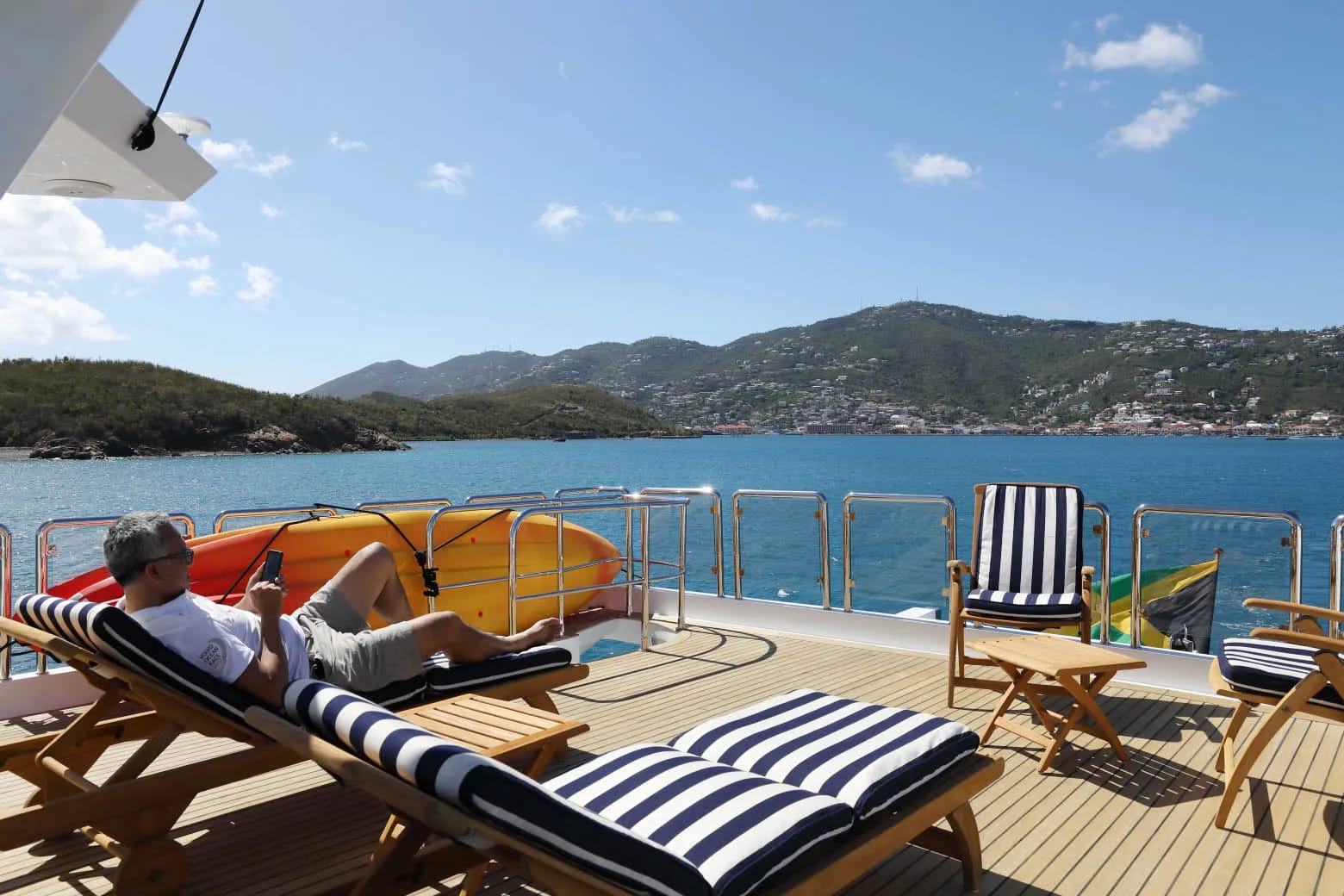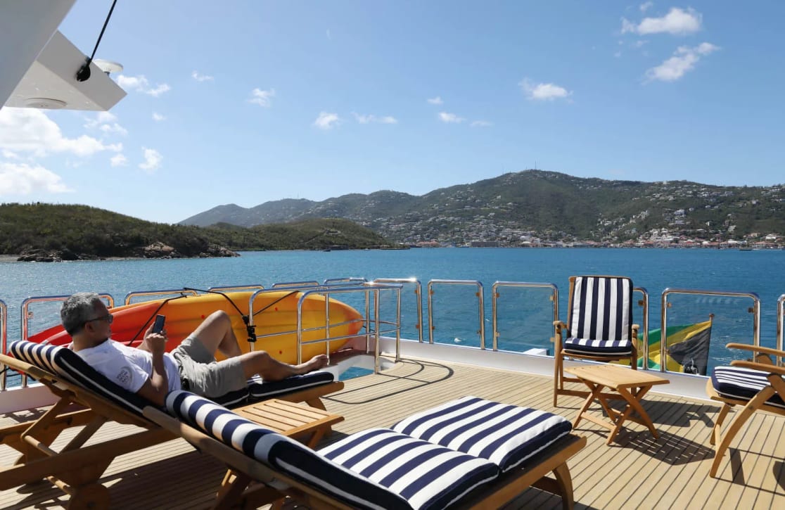 Aboard Indigo, every moment is crafted for your pleasure and comfort. Her intelligent use of space blends state-of-the-art systems with a seamless flow between indoor and outdoor living areas. The experience is personalized by a dedicated crew of six, ensuring that your desires are anticipated and every detail is attended to. Whether you’re savoring exquisite meals prepared by a skilled chef or unwinding with a glass of fine wine as the sun sets, Indigo offers an unparalleled platform for creating cherished memories. Let this exquisite vessel be your guide to an extraordinary nautical adventure, where every wave beckons with the promise of something new.