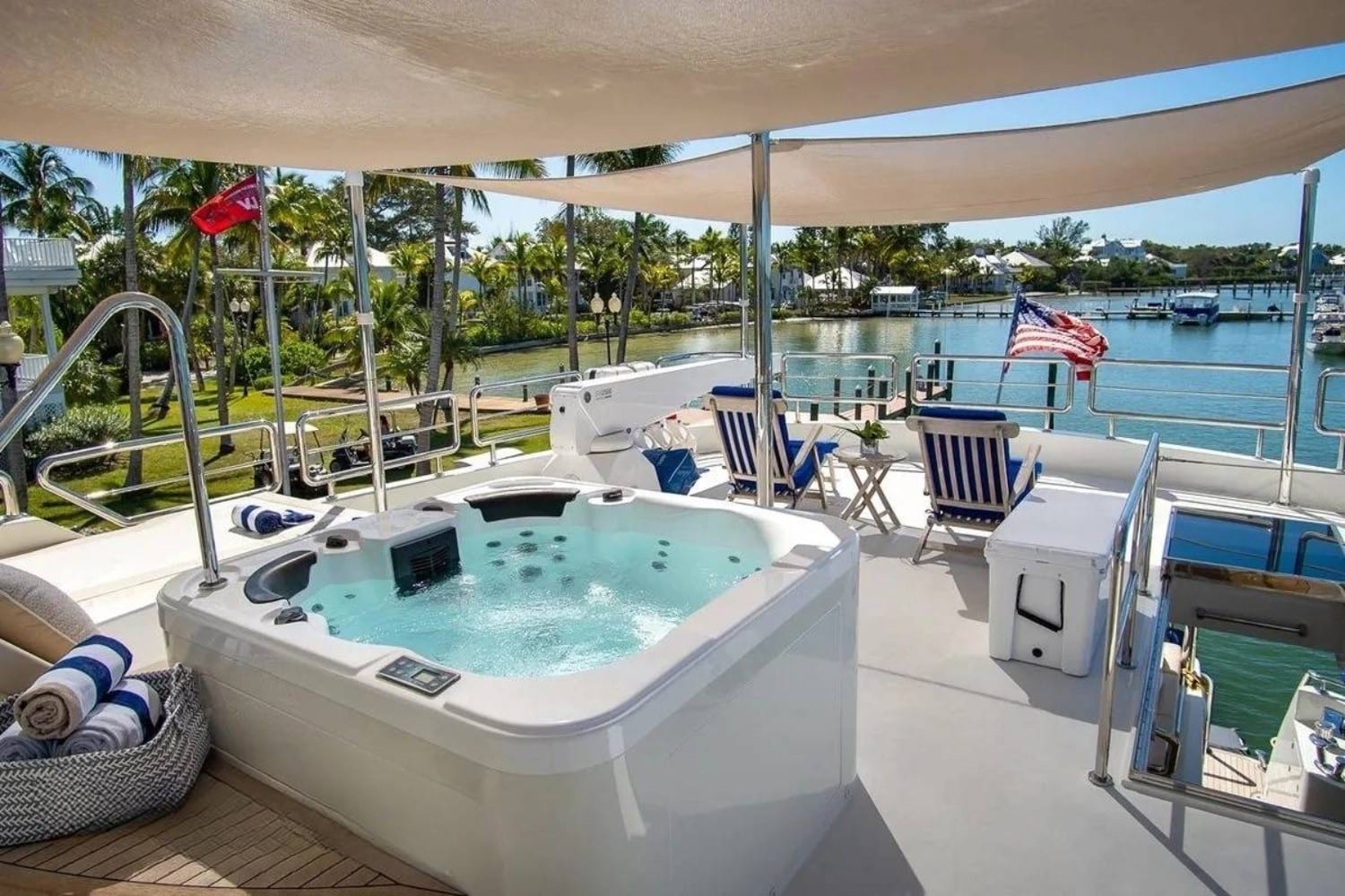 Onboard Iridescence, each moment is a testament to refined living. Begin your day with a rejuvenating dip in the deck jacuzzi, as the ocean breeze gently envelops you. The yacht’s sun deck beckons, offering a haven of comfort with its inviting sunpads and an exterior bar that transforms ordinary afternoons into extraordinary ones. As the day unfolds, retreat to the foredeck seating area—perfect for intimate conversations or simply savoring the breathtaking views. Throughout, the advanced air conditioning system ensures that every guest remains enveloped in comfort, no matter the temperature outside.