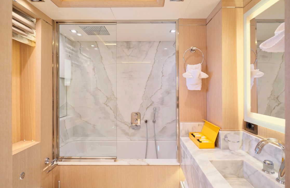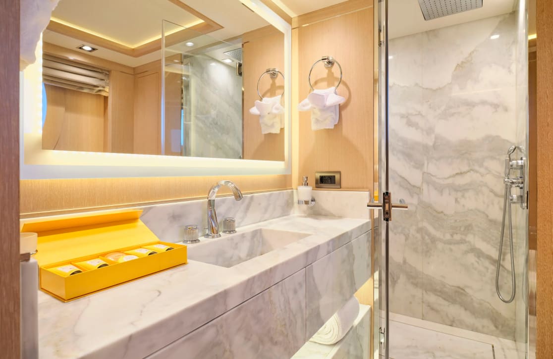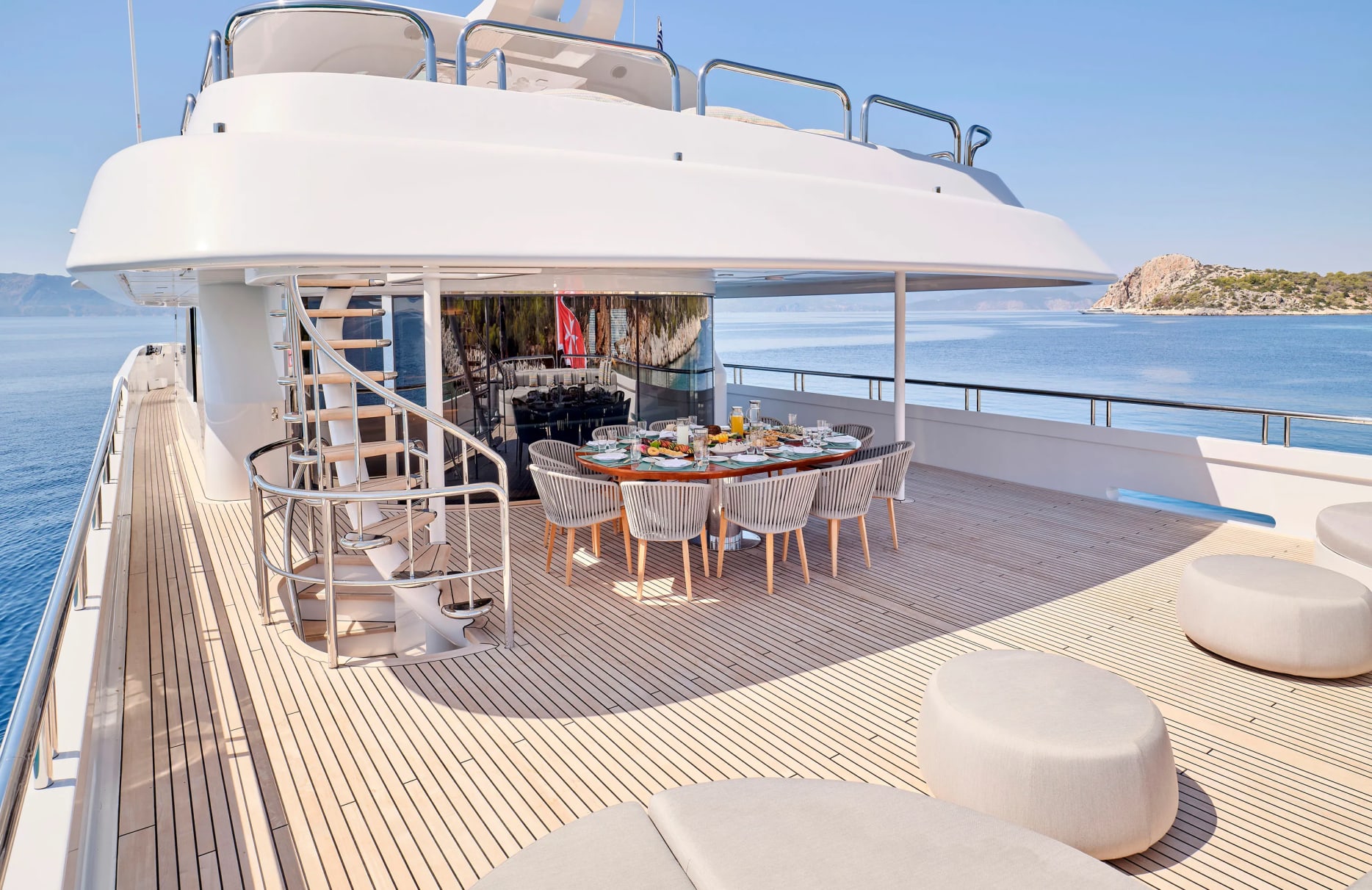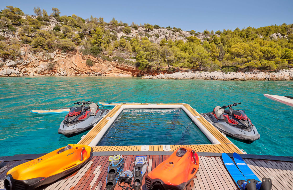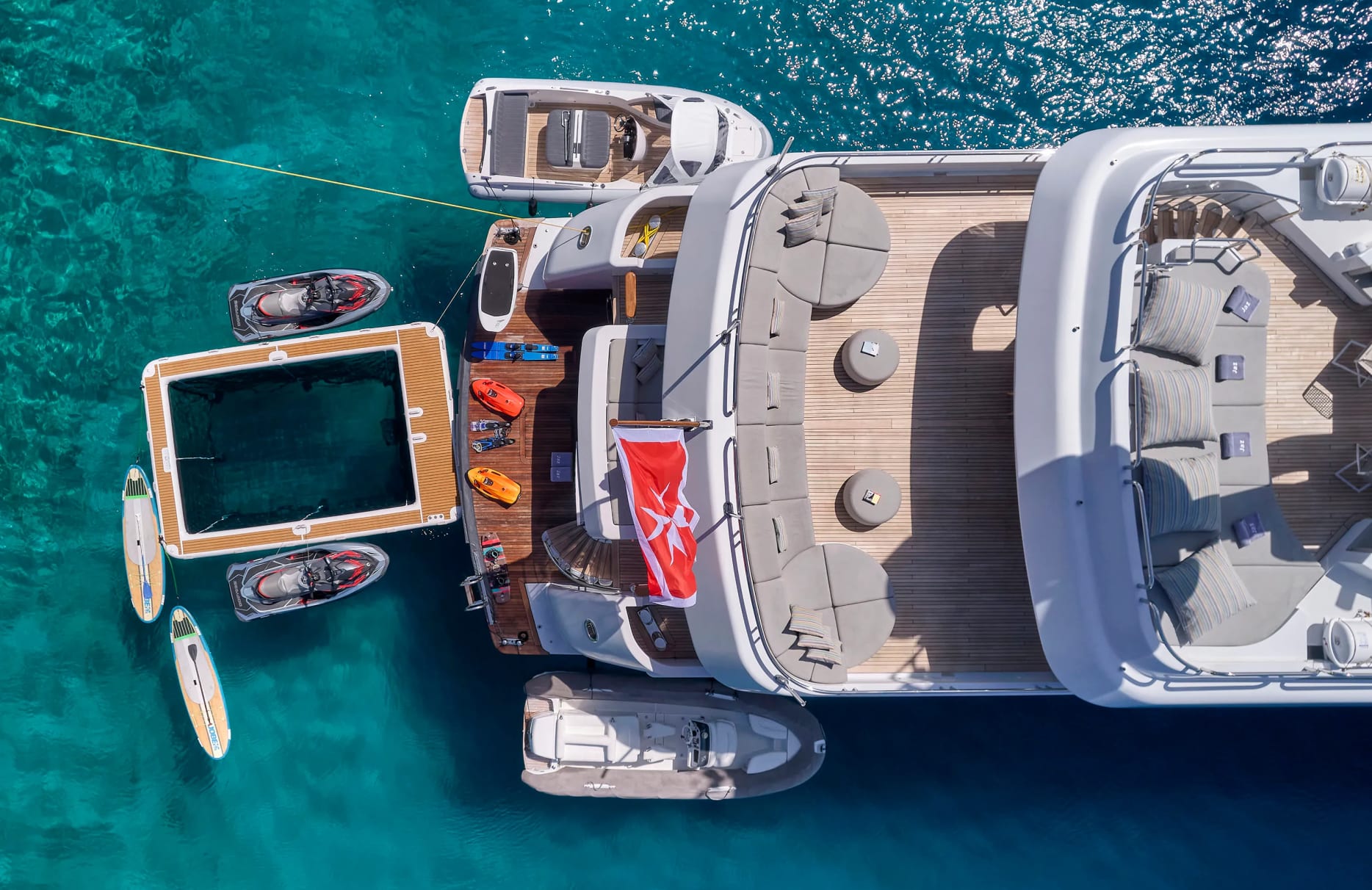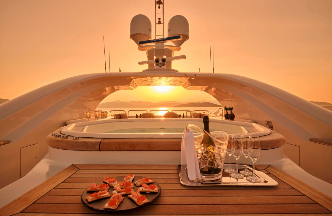Step into a world where every detail has been crafted for your utmost enjoyment. On board Jaz, you’ll find yourself surrounded by spaces that invite relaxation and entertainment. Unwind in the deck jacuzzi as you watch the sun dip below the horizon, or gather with friends at the exterior bar for an evening of laughter under the stars. Stay connected with Wi-Fi as you lounge on sunpads, or retreat to the tranquility of the sun deck for a moment of quiet reflection. Each space aboard Jaz is designed to cater to your every need, ensuring a seamless experience from dawn till dusk.