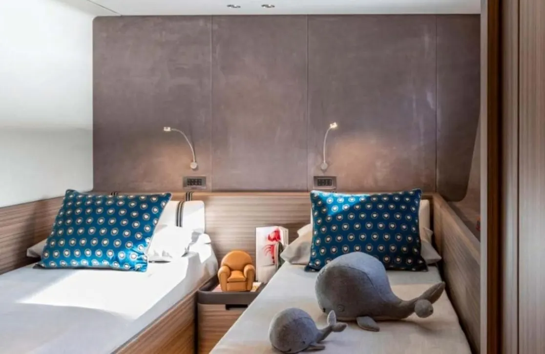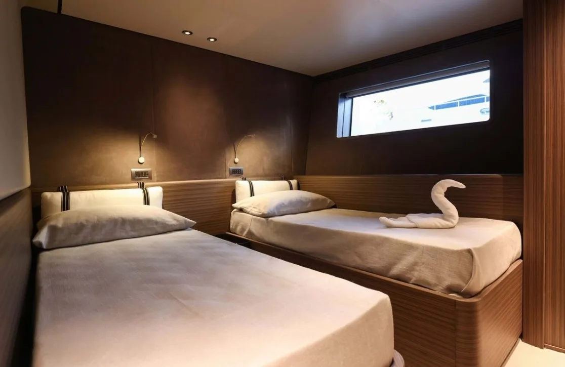Introducing JYC, the 28-meter masterpiece crafted by the renowned Custom Line, where each moment aboard promises an exquisite blend of comfort and adventure. As you embark on this journey, imagine the gentle sway of the ocean beneath you and the seamless elegance of her Antonio Citterio Patricia Viel-designed interiors enveloping you. With the ability to cruise at a steady 11 knots, JYC gracefully transports you through the azure seas, offering a range of 1,000 nautical miles for endless exploration. Whether savoring the tranquility aboard or discovering new horizons ashore, JYC provides a sanctuary where luxury and discovery meet.
