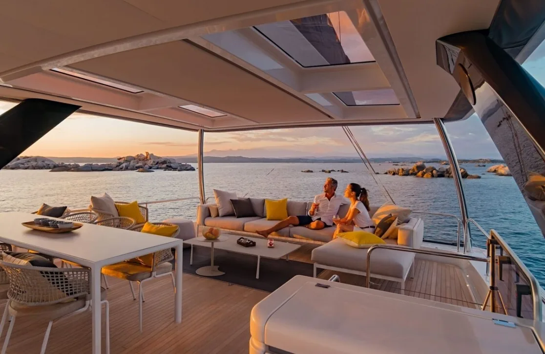 Aboard Kajikia, comfort and connection are part of the fabric of daily life. The yacht’s interiors are a haven of serenity, where climate-controlled spaces provide a cool reprieve from the midday sun, and high-speed Wi-Fi keeps you effortlessly connected to the world beyond. The open-air sunpads invite you to bask in the warmth of the sun, while evenings can be spent savoring a cocktail at the exterior bar, surrounded by the gentle lull of the sea. Every detail aboard Kajikia is designed to enhance your experience, offering a perfect blend of relaxation and entertainment.