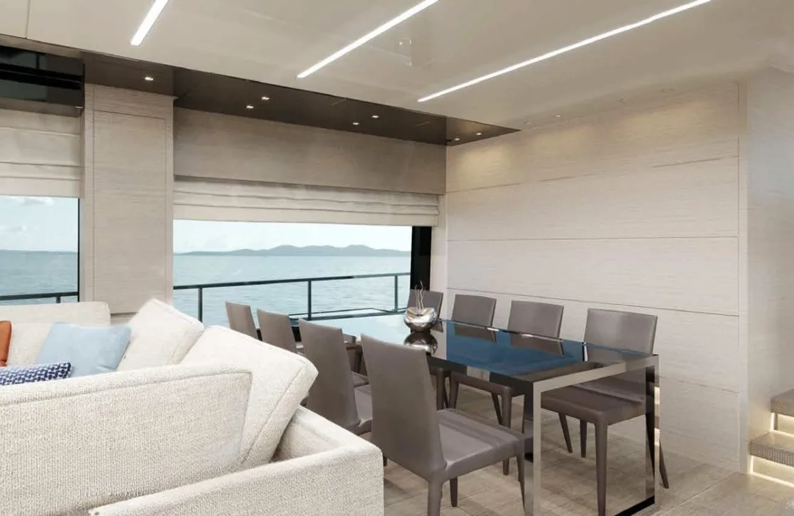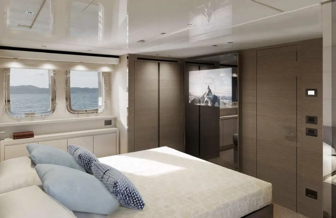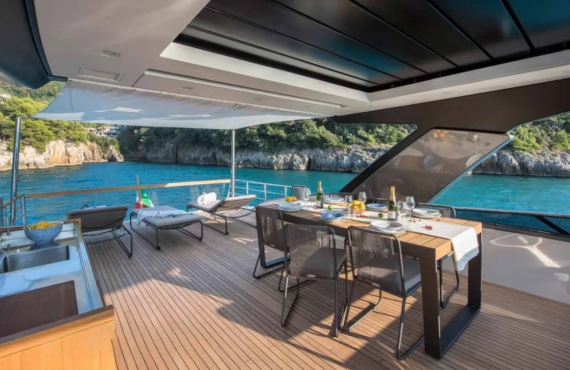 Aboard ‘Kawa,’ life unfolds in a series of elegant moments. Picture yourself on the sun deck, where plush sunpads invite long afternoons of unwinding under the sun’s warm embrace. As day turns to night, enjoy an intimate dinner on the foredeck, with the glistening sea as your backdrop. The yacht’s tender garage discreetly conceals the tools of exploration, while air conditioning offers a cool retreat from the midday heat. Stay connected with Wi-Fi, ensuring that you can share your experiences with loved ones, while the at-anchor stabilizers guarantee that even the lightest ripple won’t disturb your peace.