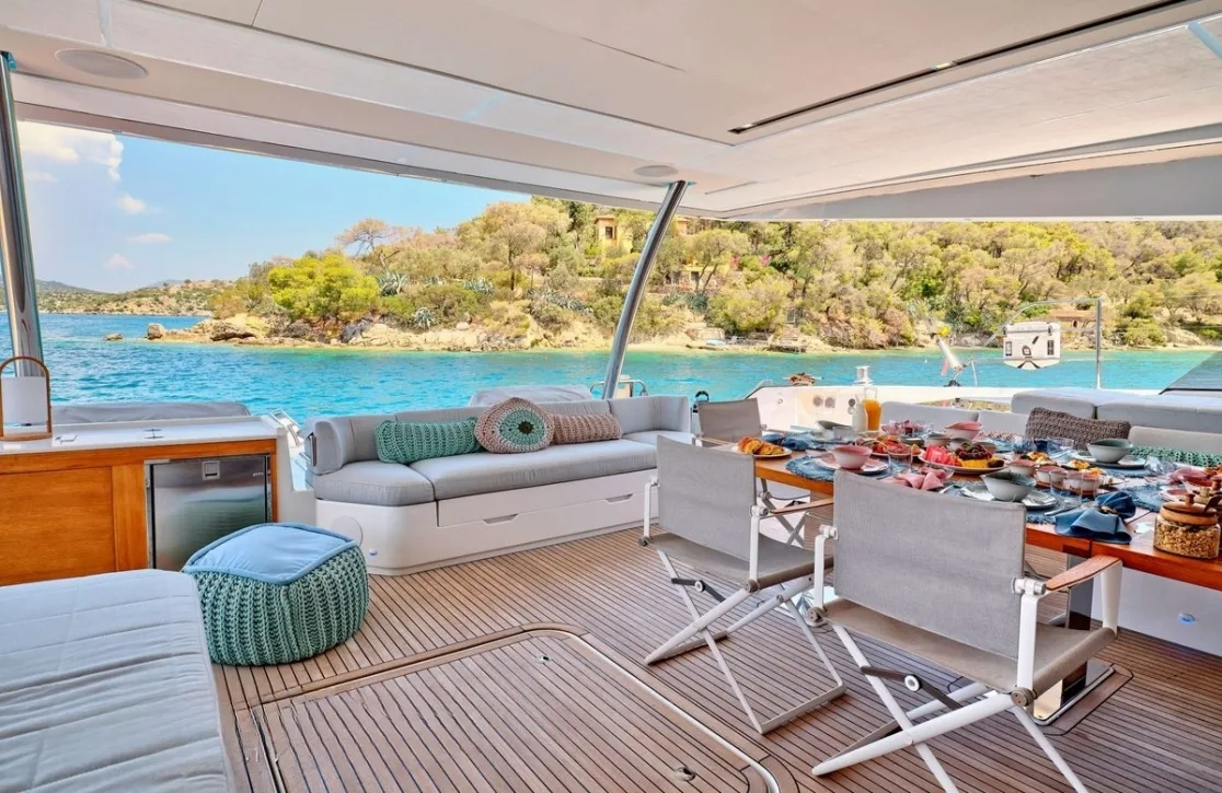 Aboard the 20-meter catamaran Kimata, crafted by the renowned Fountaine Pajot in 2021, guests are invited to embark on a journey that seamlessly blends elegance and adventure. With her capacious decks, Kimata presents a unique opportunity to explore both serene anchorages and bustling harbors in a style that is both sophisticated and relaxed. Her sleek design and shallow draft ensure that each destination, whether a secluded cove or a lively coastal town, is within easy reach, offering a week filled with captivating exploration and serene relaxation. As you cruise through the Mediterranean’s sparkling waters, feel the gentle breeze and savor the breathtaking landscapes around you. With a cruising speed of 8 knots, every moment aboard Kimata promises a harmonious blend of tranquility and excitement, creating an unforgettable escape.