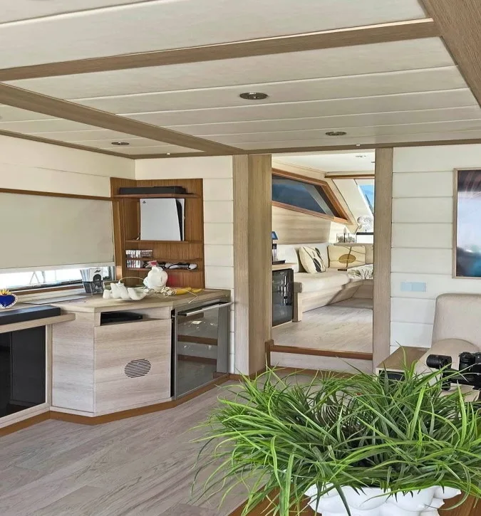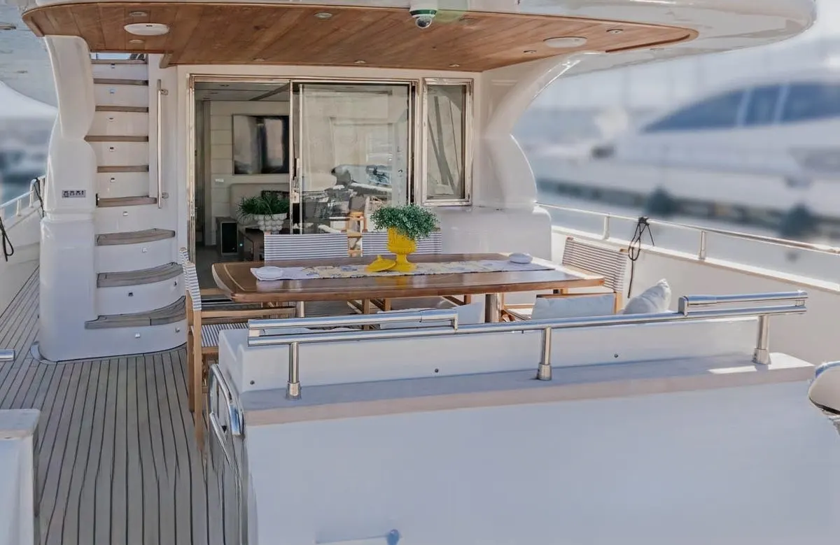 Life aboard La Chicca is a harmonious blend of comfort and sophistication. As the sun sets, gather on the foredeck seating area with a table for an alfresco meal under the stars, or retreat to the sunpads to soak in the Mediterranean rays. Modern conveniences such as Wi-Fi connectivity keep you connected to the world, while air conditioning ensures a refreshing retreat from the sun. With stabilizers underway, the journey is smooth, allowing you to savor every moment at sea. The thoughtfully designed spaces invite you to unwind, whether you’re enjoying a quiet morning coffee or an evening cocktail in good company.