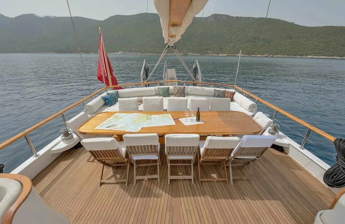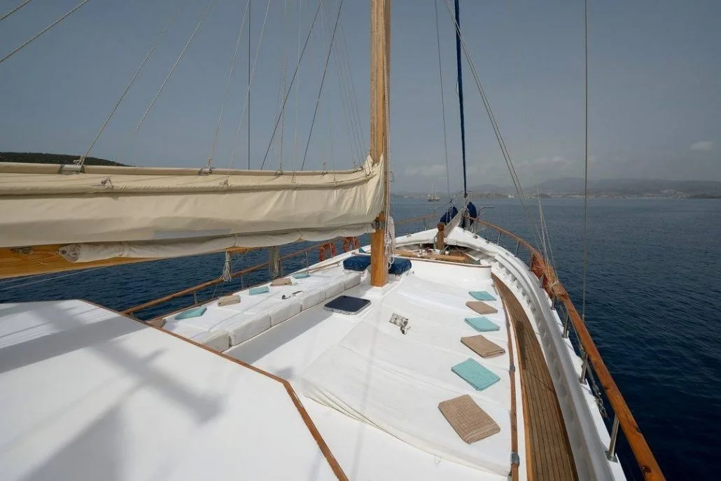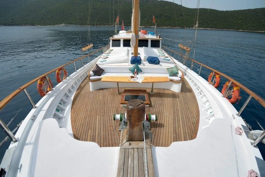 Imagine yourself aboard the sophisticated gulet yacht ‘La Reine,’ a 24-meter masterpiece crafted by the renowned Custom shipyard. As you cruise the crystalline waters of the East Mediterranean, La Reine becomes your sanctuary at sea, where days are filled with exploration and evenings with serene relaxation. With a cruising speed of 7 knots and the ability to reach up to 10 knots, she offers both the thrill of adventure and the tranquility of a gentle voyage. The dedicated crew of four ensures a seamless experience, allowing you to fully immerse yourself in the beauty of your surroundings.