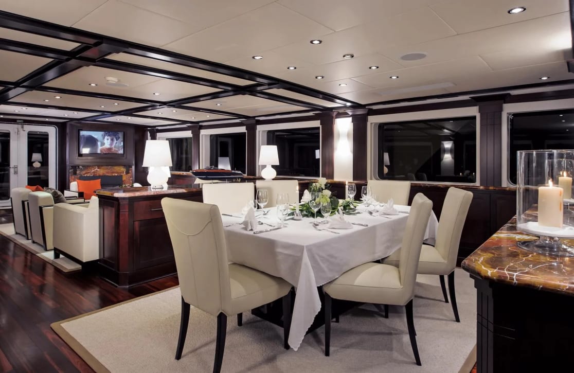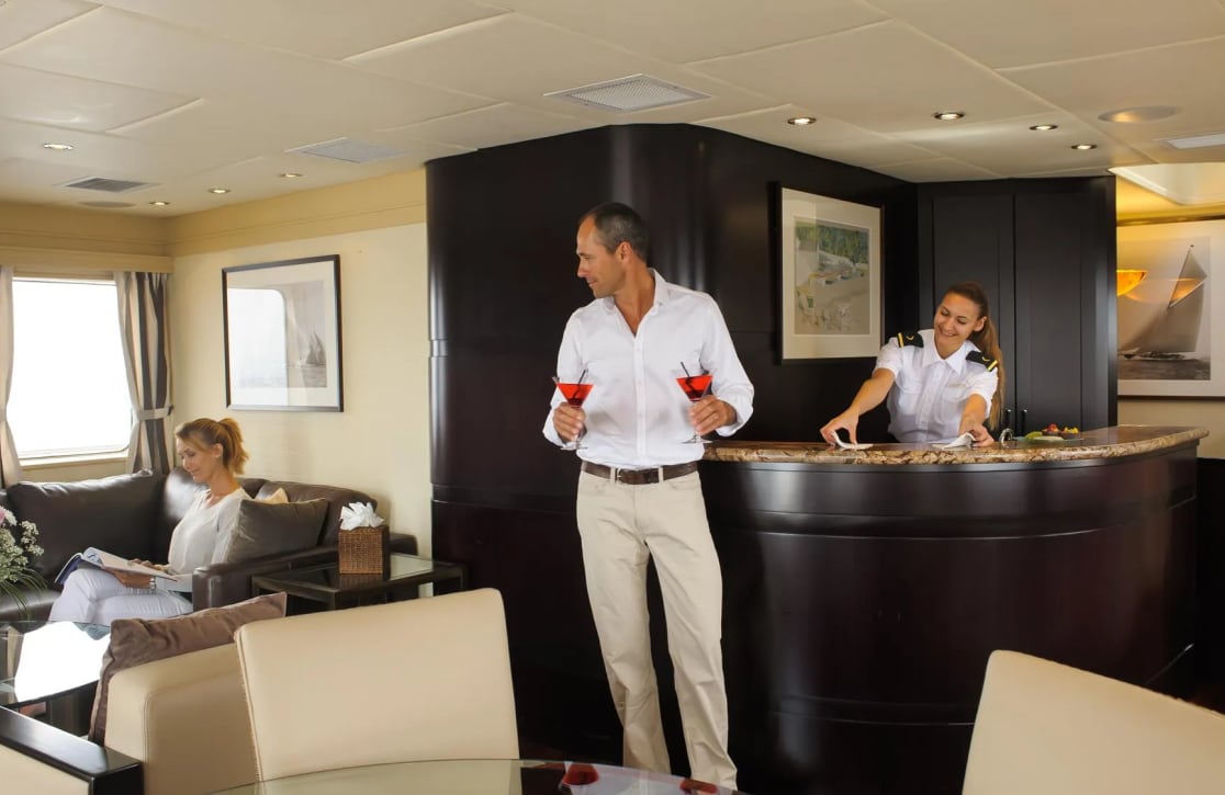 L’Albatros welcomes up to 12 guests into her embrace of comfort and style, offering six elegantly appointed cabins. The master suite, along with four double cabins and one twin cabin, ensures a restful slumber with plush bedding and thoughtful touches throughout. Imagine waking up to the gentle sway of the ocean, sunlight filtering through your window, ready to greet another day of adventure or leisure.