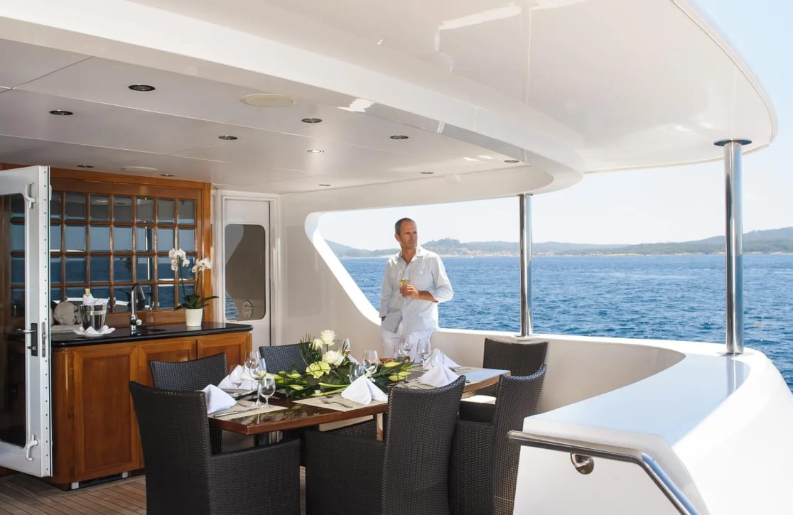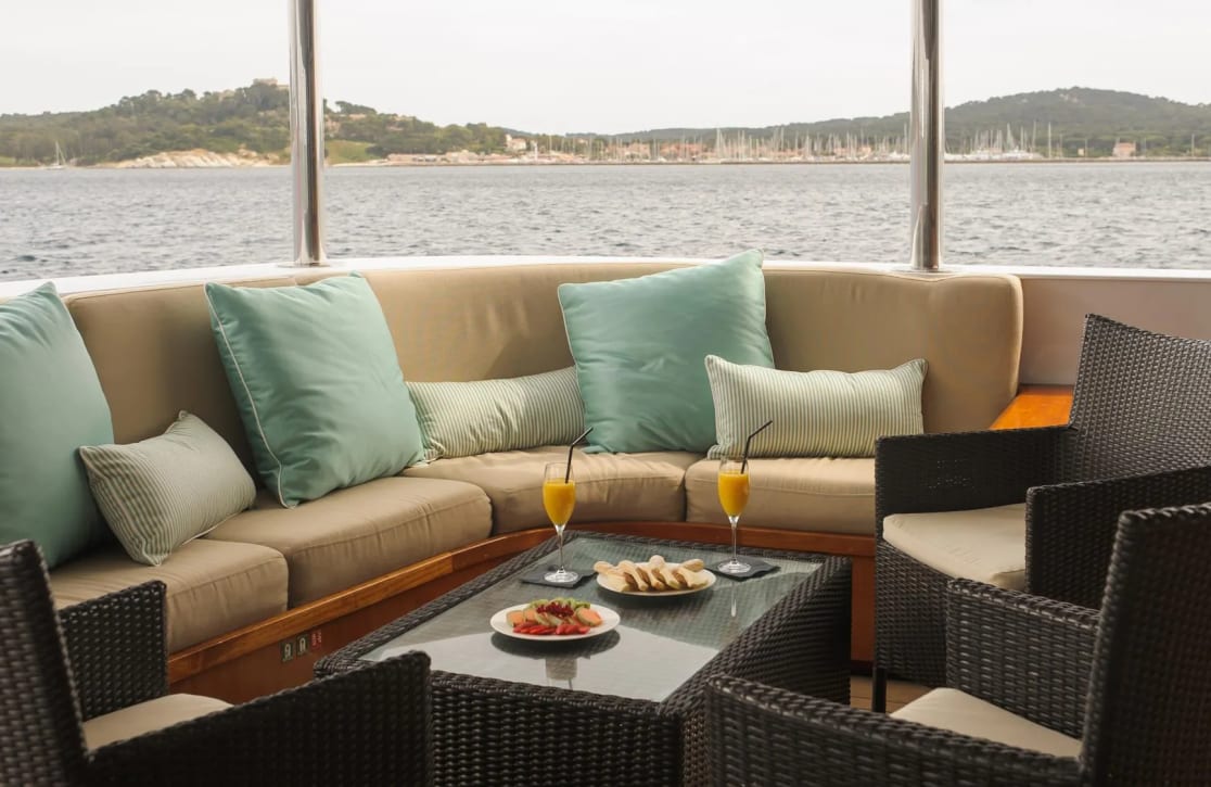Aboard L’Albatros, the experience is one of effortless relaxation and refined elegance. As you unwind in the deck jacuzzi, let the panoramic views inspire a state of tranquility. The air-conditioned interiors provide a cool retreat, while seamless Wi-Fi connectivity keeps you in touch with the world, should you choose. Whether you’re savoring quiet moments or entertaining guests, every detail of the vessel’s design encourages a sense of ease and sophistication.