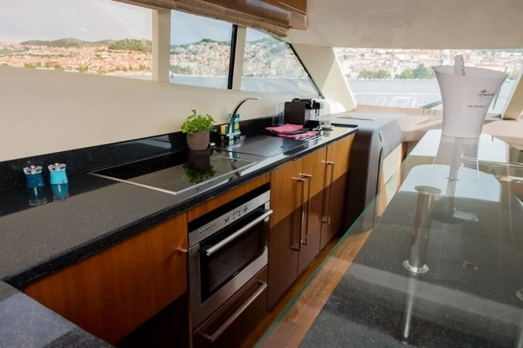 Imagine a week on the tranquil waters of the Mediterranean aboard Le Chiffre, a 20-meter masterpiece crafted by the esteemed Galeon shipyard. This vessel, with its sleek lines and dynamic performance, invites you to explore secret coves and bustling harbors at a comfortable cruising speed of 20 knots. The allure of Le Chiffre is not merely in her construction but in the experiences she promises. From savoring exquisite meals under the starlit sky to discovering hidden coastal treasures, each moment aboard is designed to captivate and inspire. With her modest draft, Le Chiffre easily navigates shallow waters, allowing you to reach secluded beaches and anchorages that remain untouched by time.