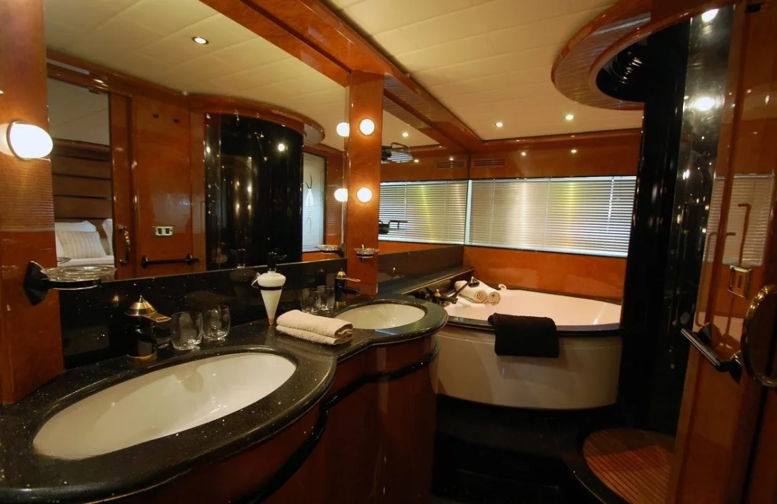 Aboard Leigh, every detail is designed for indulgence and relaxation. As you unwind, the gentle sea breeze complements the comfort of air-conditioned interiors, while Wi-Fi keeps you connected with the world beyond the horizon. Evenings invite you to soak in the deck jacuzzi under a blanket of stars or gather with friends in sophisticated social spaces where satellite TV offers entertainment without compromise. Leigh’s thoughtful design ensures that each moment aboard feels like a celebration of life’s finest pleasures.
