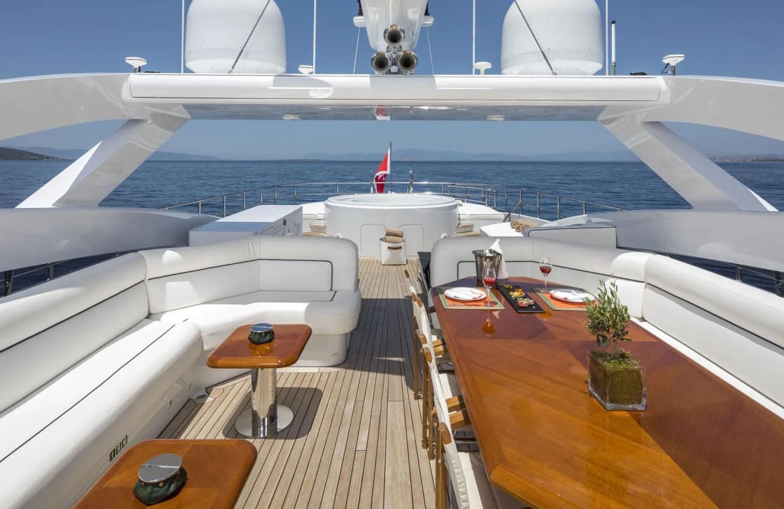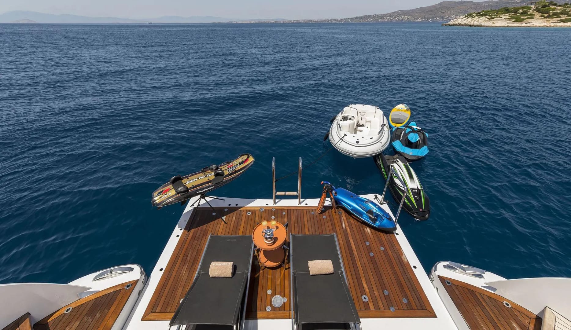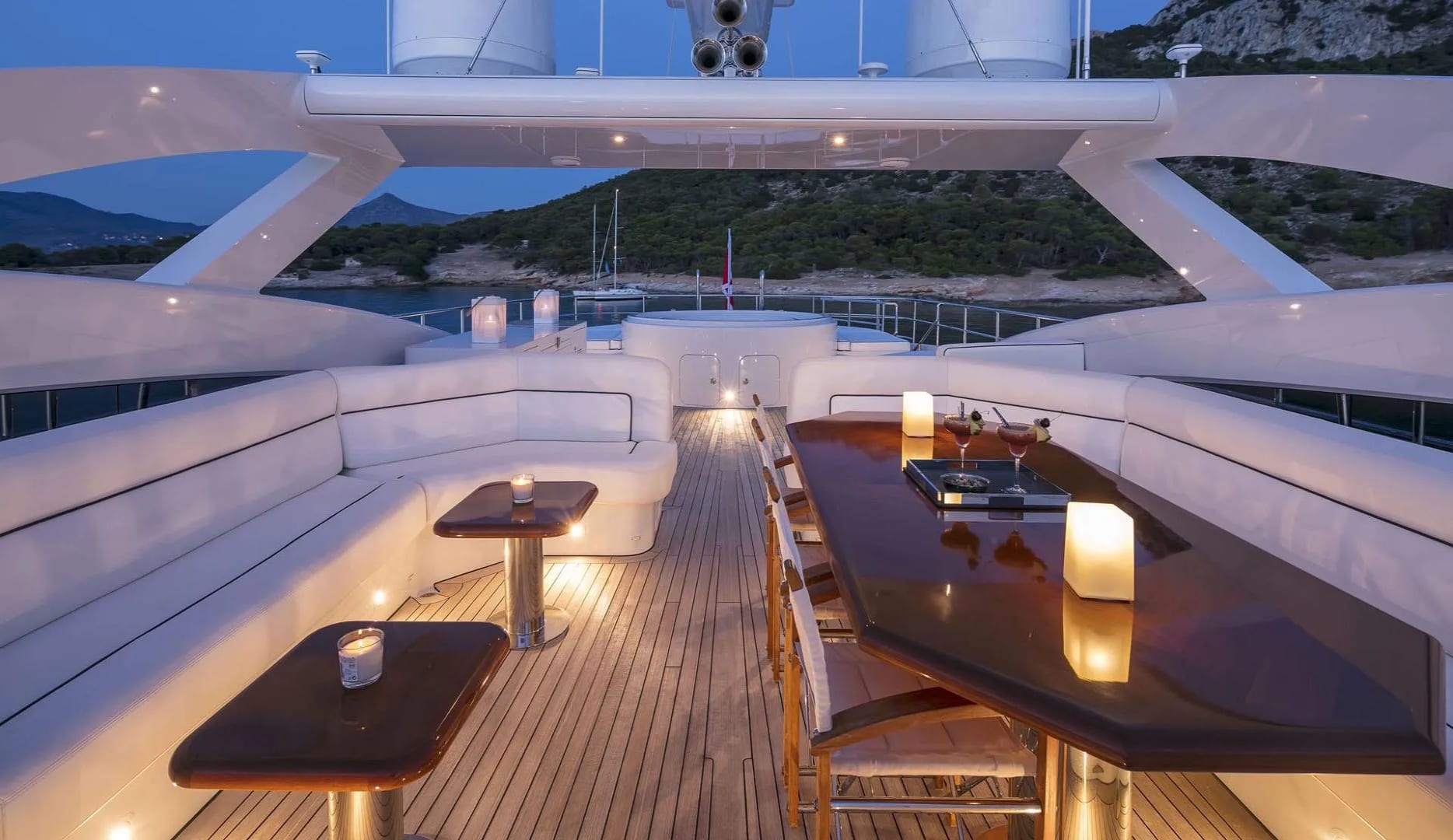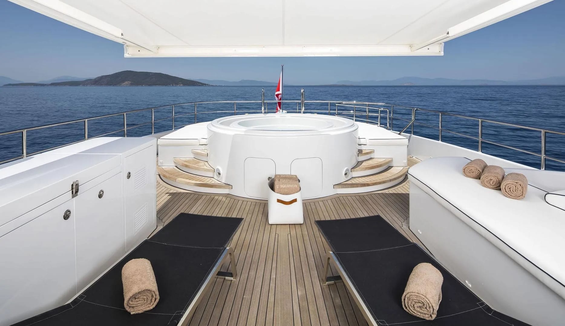 Onboard L’Equinox, life unfolds in generous spaces thoughtfully designed for both leisure and entertainment. Imagine mornings spent on the expansive deck, where a jacuzzi offers a tranquil haven with panoramic sea views. As the day unfolds, the yacht’s sophisticated climate control system maintains an ideal ambiance, ensuring comfort as you indulge in the finest culinary experiences or unwind with a good book. Seamless connectivity is at your fingertips, allowing you to stay in touch with the world or simply share your adventures with loved ones back home. Evenings aboard are a delight, with the soft glow of the setting sun reflected in the yacht’s sleek exteriors, setting the stage for unforgettable moments under the stars.