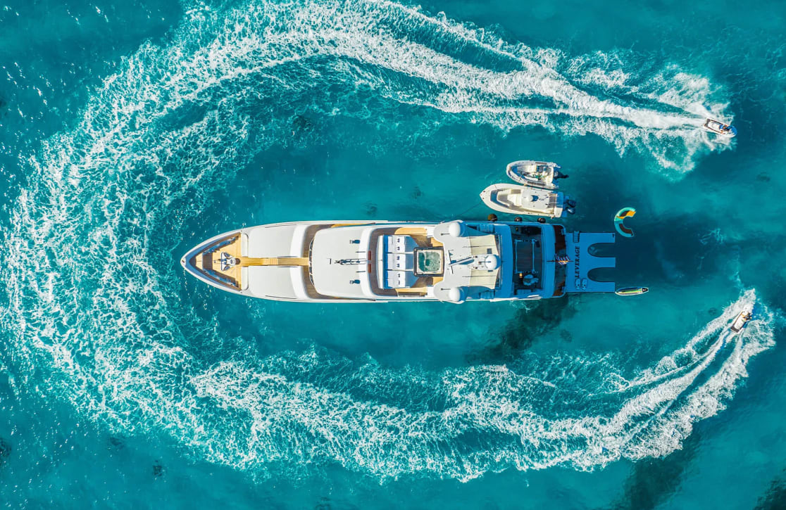With a range of 2,200 nautical miles, Leverage unlocks a world of possibilities, from tranquil mornings watching the sunrise to evenings of unparalleled beauty as the sun dips below the horizon. Whether seeking solitude or social gatherings, the yacht’s inviting spaces offer the perfect setting for every moment. Leverage’s dedicated crew of seven ensures your needs are anticipated and met, allowing you to fully immerse yourself in the serenity and splendor of your surroundings.