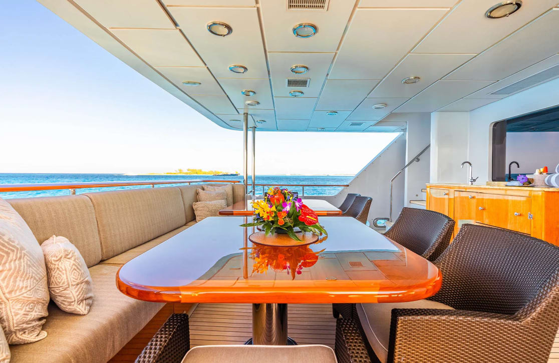 Life aboard Leverage is a tapestry of exquisite experiences. The deck jacuzzi becomes a haven of relaxation, where you can unwind under the stars with a refreshing drink in hand. The yacht’s sunpads offer a tranquil spot for soaking up the sun, while the exterior bar becomes the centerpiece for lively conversations and sunset cocktails. With Wi-Fi at your fingertips, you can stay connected or simply escape into the pages of a book. The air-conditioned interiors provide a cool retreat from the midday sun, and the at-anchor stabilizers ensure a smooth and comfortable experience throughout your journey.