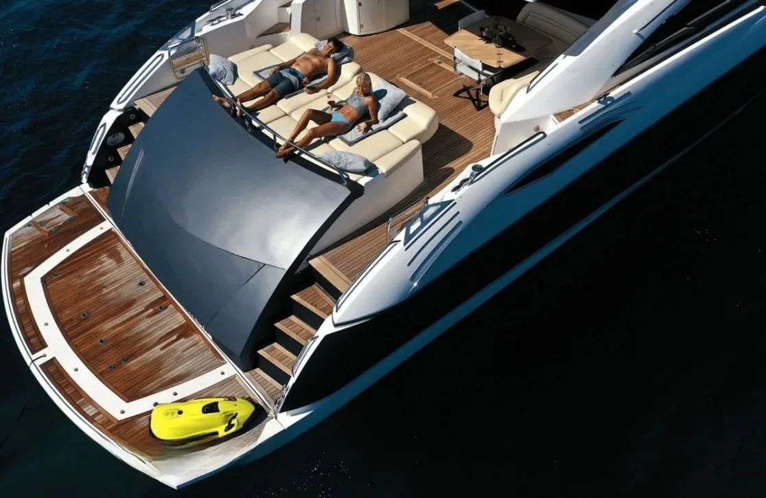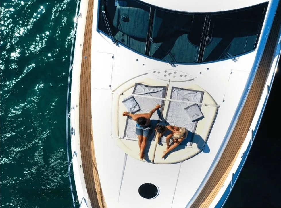 Onboard Light Blue, the atmosphere is one of serene indulgence. The yacht’s interiors, crafted by the esteemed Sunseeker team, exude sophistication and comfort. Guests can stay seamlessly connected with Wi-Fi while enjoying the ideal climate provided by comprehensive air conditioning. As the day unfolds, relaxation on the inviting sunpads becomes a cherished ritual, offering panoramic views that enhance every moment. Whether sharing stories over a sumptuous meal or unwinding with evening entertainment, the yacht’s spaces are designed to foster both connection and solitude, catering to every whim.