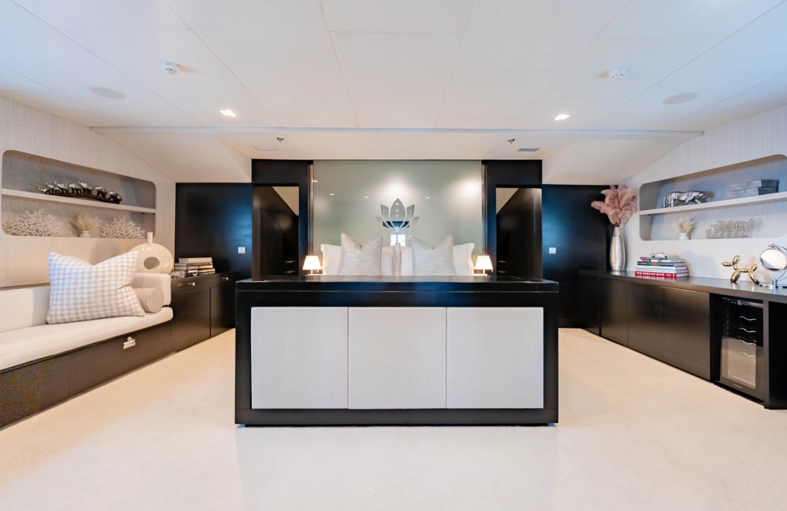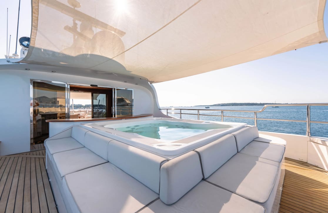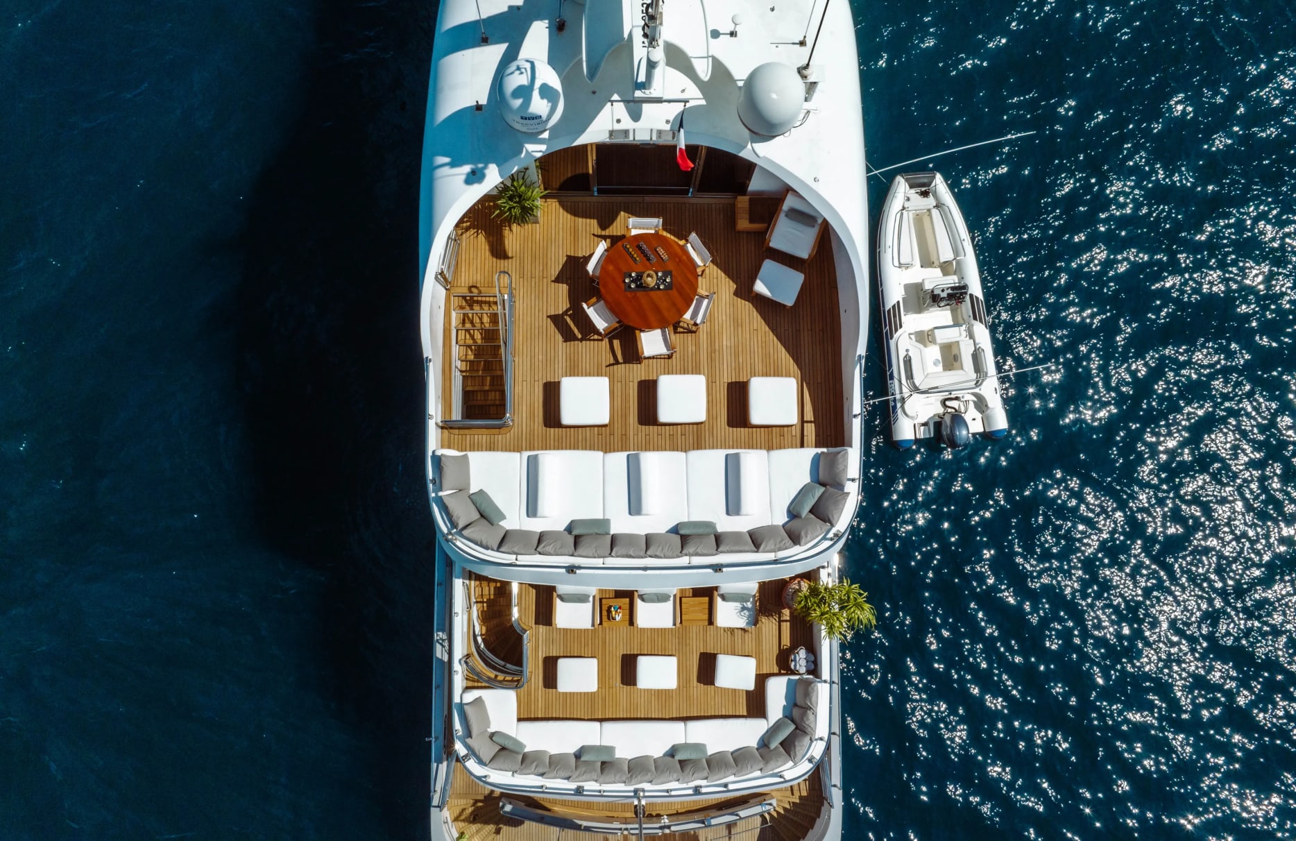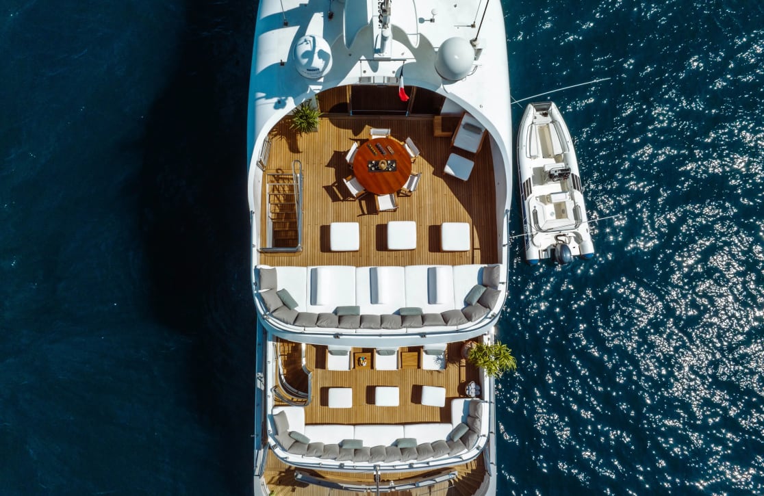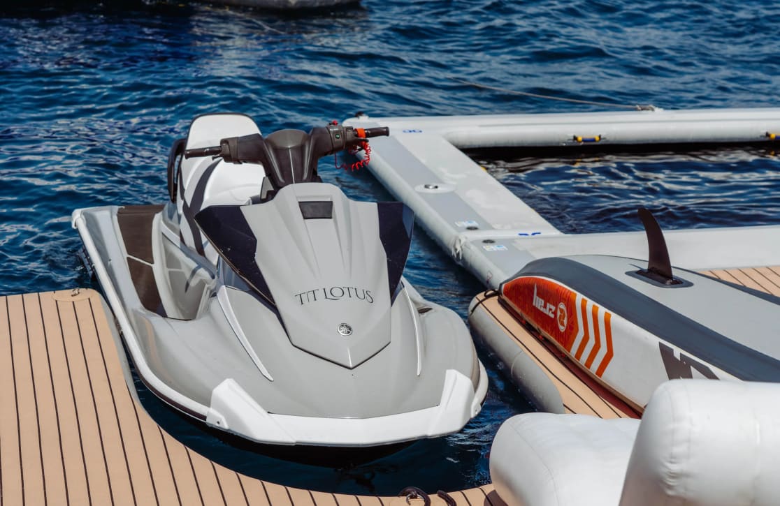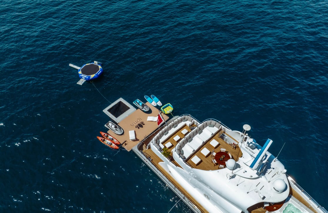 Within the embrace of Lotus’s exquisite spaces, guests find a realm of comfort and entertainment. Picture yourself unwinding in the deck jacuzzi as the sun dips below the horizon, or staying active in the state-of-the-art gym, ensuring your wellness goals are met even at sea. The yacht’s seamless Wi-Fi connectivity keeps you in touch with the world if you desire, while the air-conditioned interiors provide a sanctuary of comfort regardless of the weather outside. As evening falls, gather with friends and family for a delightful barbecue under the stars, making use of the yacht’s splendid facilities.