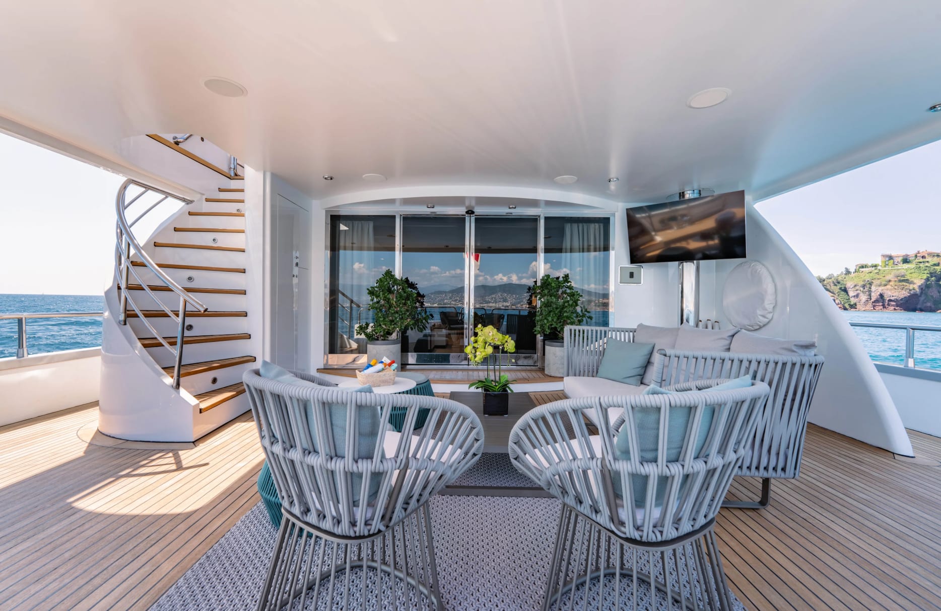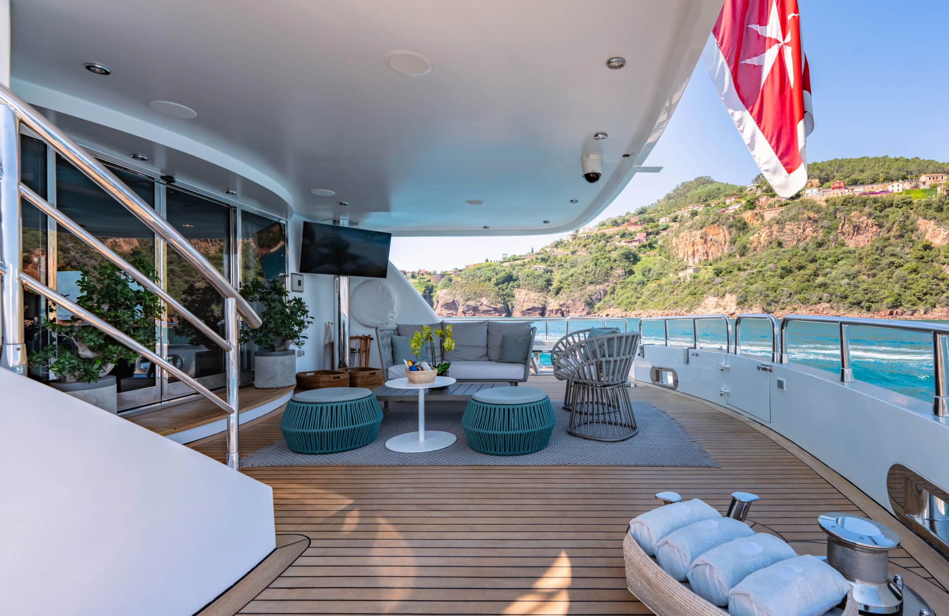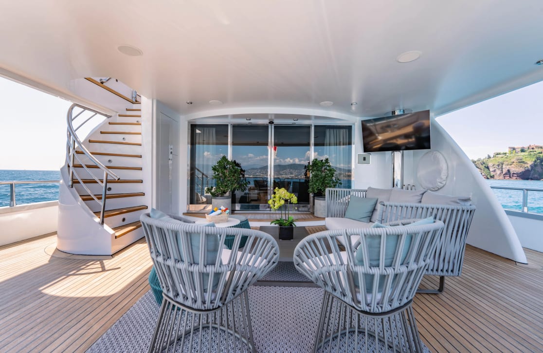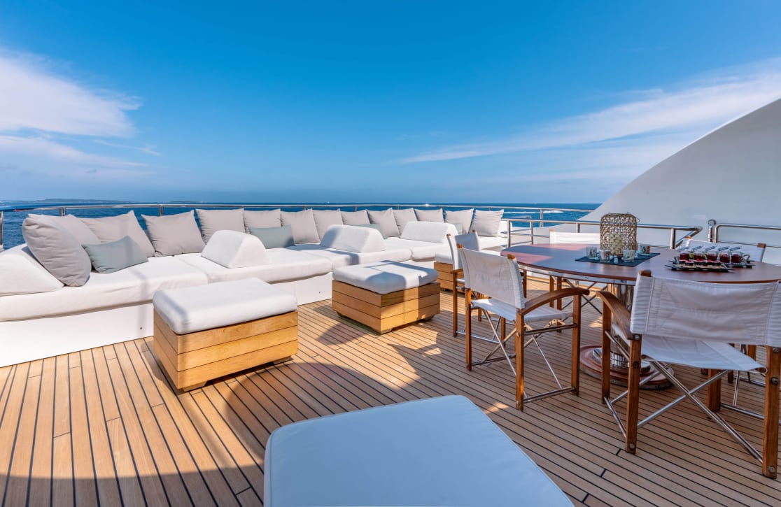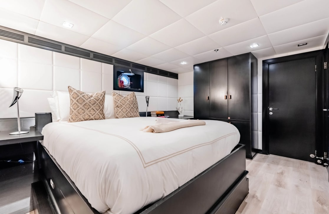 Within the embrace of Lotus’s exquisite spaces, guests find a realm of comfort and entertainment. Picture yourself unwinding in the deck jacuzzi as the sun dips below the horizon, or staying active in the state-of-the-art gym, ensuring your wellness goals are met even at sea. The yacht’s seamless Wi-Fi connectivity keeps you in touch with the world if you desire, while the air-conditioned interiors provide a sanctuary of comfort regardless of the weather outside. As evening falls, gather with friends and family for a delightful barbecue under the stars, making use of the yacht’s splendid facilities.
