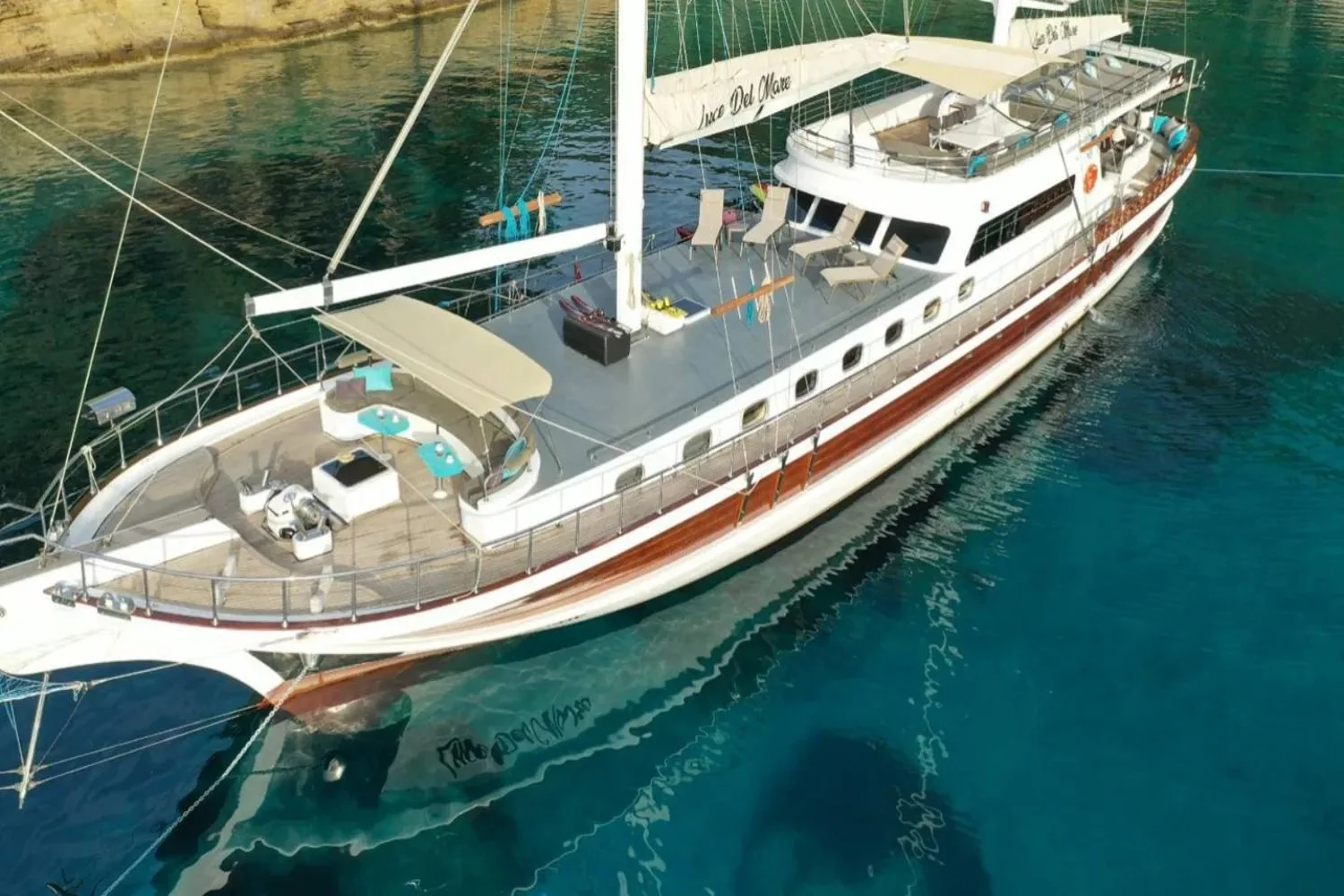 Envision a week aboard the Luce Del Mare, a 34-meter gulet yacht, where refined elegance meets the allure of the Mediterranean. Crafted by Fethiye Shipyard, this vessel invites you to embrace the serenity of the open sea, with expansive decks that are perfect for sun-soaked afternoons and starlit dinners. As you glide at a leisurely pace of 9 knots, the world unfolds before you, offering both tranquility and vibrant exploration. Whether you’re savoring the coastal scenery or discovering hidden gems ashore, the Luce Del Mare promises an immersive and unforgettable journey.
