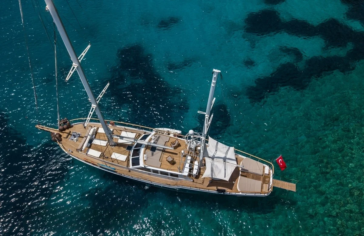 Embark on an unforgettable journey aboard the 93-foot motor/sailer yacht, Luja, a vessel where elegance meets adventure on the high seas. Crafted by the renowned Custom shipyard in 2013 and refitted to pristine condition in 2022, Luja offers an exhilarating blend of sophistication and exploration. Her sleek design and shallow draft allow you to anchor close to secluded coves, while the cruising speed of 12 knots ensures you’re always poised for the next adventure. With room for up to eight guests, this yacht becomes your personal retreat, an oasis where every moment is tailored to your desires, whether you’re lounging under the Mediterranean sun or exploring vibrant coastal towns.