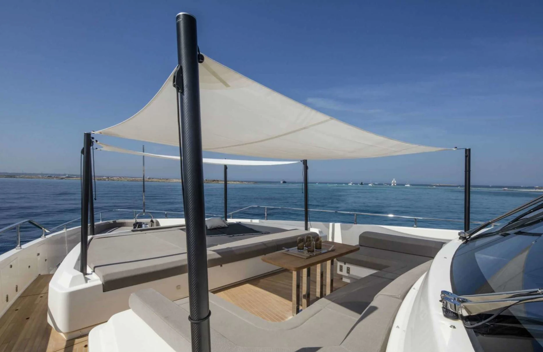 Aboard M Forever, every space invites you to unwind and savor the moment. Begin your day with a refreshing dip in the deck jacuzzi, where panoramic views stretch endlessly before you. As the sun warms the sundeck, retreat under the sunpads, or indulge in a leisurely afternoon at the beach club, mere steps from the water’s edge. Evenings transform the exterior bar into a lively social haven, while the air-conditioned interiors provide a cool sanctuary. With seamless Wi-Fi connectivity, stay in touch with the world, or disconnect entirely as you choose.