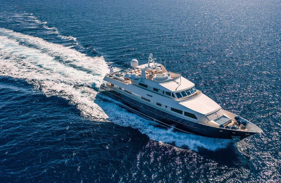 Embark on a journey aboard the distinguished motor yacht Magix, a 38-meter marvel crafted by the esteemed Heesen shipyard. With her sleek lines and elegant design by Eva Cadio & Co., Magix is a floating palace that seamlessly marries form and function. As you cruise at a serene 14 knots, the yacht’s aluminum hull promises not only strength but an unparalleled seafaring adventure, whisking you away to explore distant shores over 1,843 nautical miles. Whether you’re savoring the gentle sway of the ocean or stepping ashore for cultural explorations, each moment on Magix is an invitation to discover and delight.