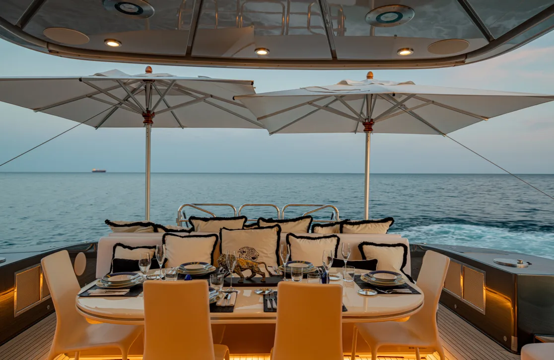 The Manu V, a masterpiece from the Leopard shipyard, offers an exceptional maritime journey for those who crave both elegance and adventure. Stretching over 34 meters, this yacht is a seamless blend of sophistication and performance, inviting you to explore vibrant coastlines and secluded coves with ease. Whether you are skimming the azure waves at an exhilarating 40 knots or anchored in a tranquil bay, the Manu V promises a voyage that captivates every sense. As you embark on this floating sanctuary, each moment becomes an opportunity to unwind, explore, and savor the boundless beauty of the Mediterranean, all meticulously curated by a dedicated crew of five.