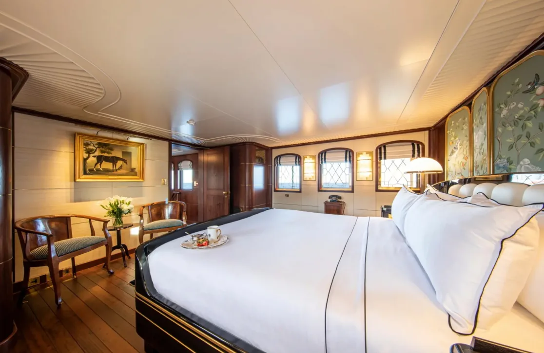 Marala’s accommodations are a haven of sophistication, crafted to welcome up to 12 guests in six beautifully appointed cabins. Each morning greets you with the gentle sway of the sea, as sunlight filters through your window, casting a warm glow over the master suite or the elegantly designed VIP and double cabins. The twin cabins offer a versatile space for friends or family, creating a personalized sanctuary where relaxation and restful slumber are paramount. Every detail has been considered to provide a serene retreat after days filled with adventure on the open water.