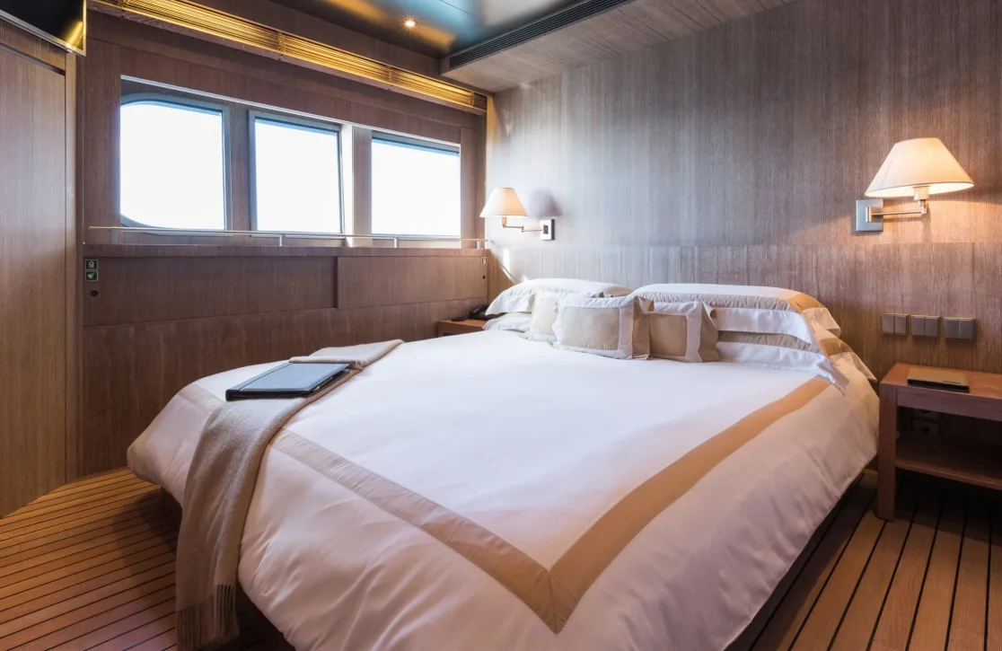 Mariu warmly welcomes up to 12 guests into her embrace, offering a sanctuary of rest and relaxation across six beautifully appointed cabins. Each morning, awaken in your elegantly designed suite, where the gentle sway of the sea lulls you into a sense of serenity. The master suite, a haven of privacy and comfort, promises restful nights, while the VIP and double cabins offer flexible arrangements to suit each guest’s preference. Every detail has been crafted to provide a restful retreat, where the harmonious design and sumptuous materials envelop you in a world of exquisite comfort.