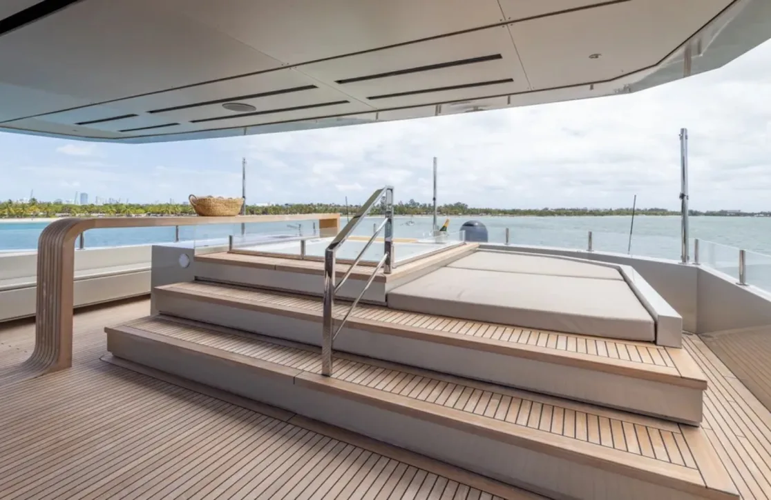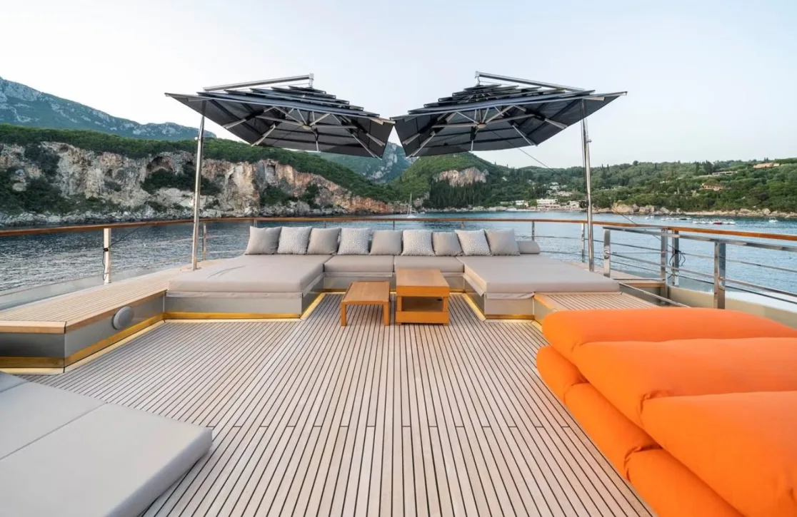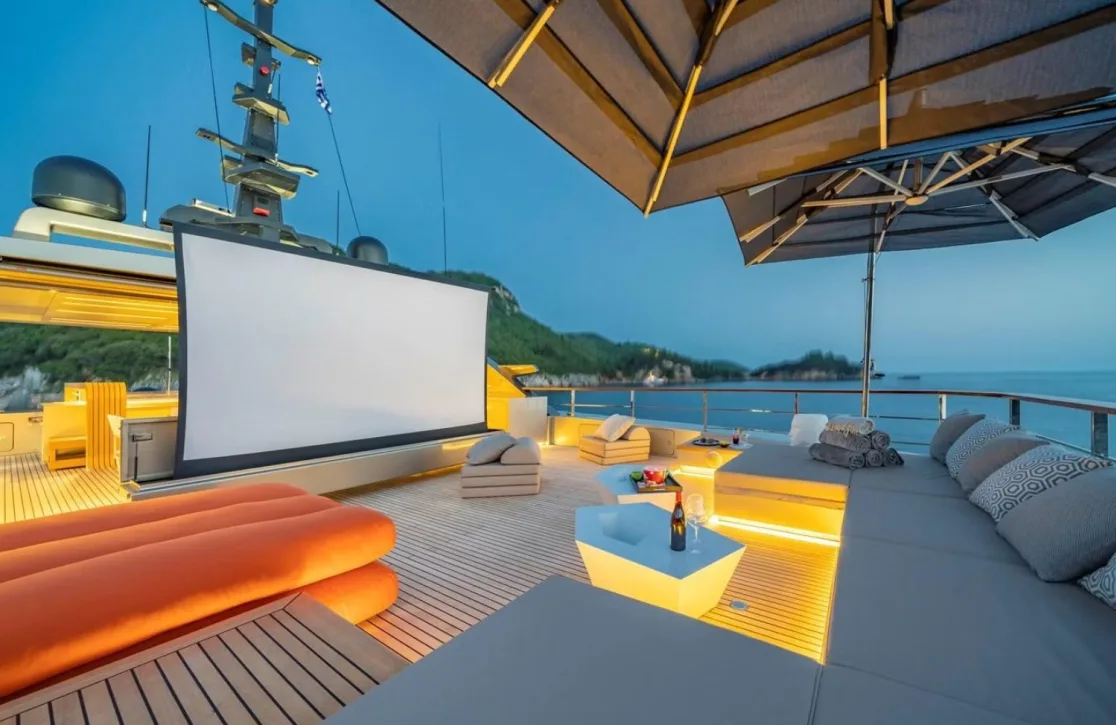 Life aboard Maverick is a symphony of comfort and sophistication, with every detail curated for your delight. Imagine mornings spent lounging in the sun on expansive sunpads, or evenings beneath a canopy of stars in the outdoor cinema. The jacuzzi offers a soothing retreat, while the beach club provides a perfect space for leisurely afternoons. With modern air conditioning ensuring your comfort, Maverick is a sanctuary where days drift seamlessly between relaxation and adventure.