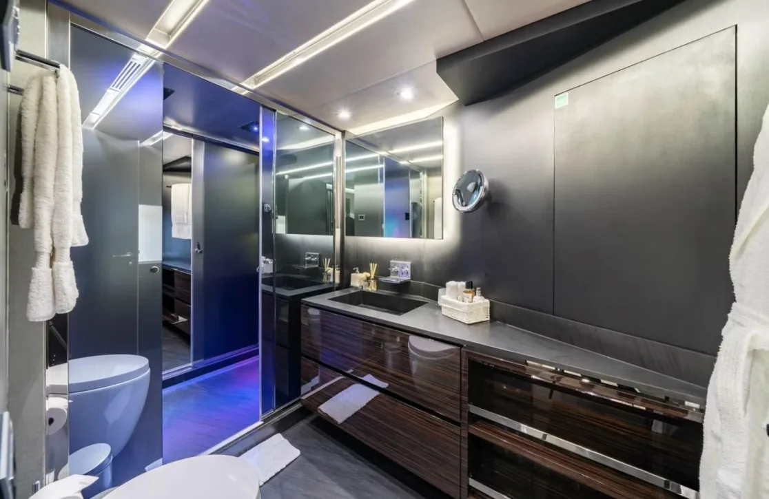 Maverick’s guest accommodations redefine marine comfort, with five elegantly designed cabins that envelop you in warmth and tranquility. Hosting up to 11 guests, the yacht features three VIP cabins, a twin cabin, and a single cabin, offering a restful haven after a day of exploration. Wake to the gentle sway of the sea in plush queen or single beds, and let the serene ambiance of your surroundings envelop you in peace and rejuvenation.