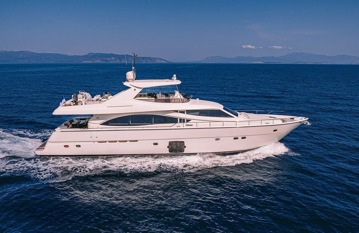 Imagine setting sail on the exquisite motor yacht ‘Maybe Not,’ a masterpiece of Italian craftsmanship built by Ferretti Yachts. Spanning a stately 25 meters, this 2009 creation offers an unparalleled charter experience for up to eight guests. With the open sea as your backdrop, each journey aboard ‘Maybe Not’ is a blend of elegance and adventure. Whether you’re cruising at a smooth 20 knots or savoring a serene anchorage, this yacht promises an unforgettable week of exploration. Discover secluded coves or vibrant harbors with the assurance of a 300-nautical-mile range, making each day a new chapter in your maritime story.