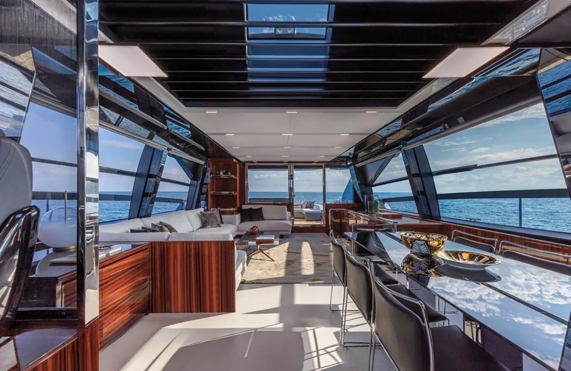 Onboard Montenapo, every detail is curated for your pleasure, from the expansive salon inviting you to unwind, to the open-air decks where al fresco dining becomes an art form. As you bask on the sunpads or take a refreshing dip from the hydraulic swim platform, the world outside gently fades, leaving only pure serenity. Stay connected with high-speed WiFi, or simply let the cool embrace of air conditioning add to your comfort. Here, each moment is an opportunity to savor life at sea in style.