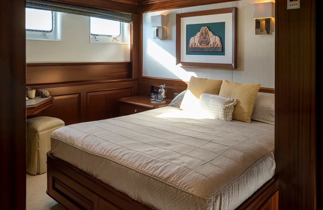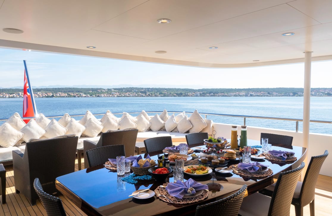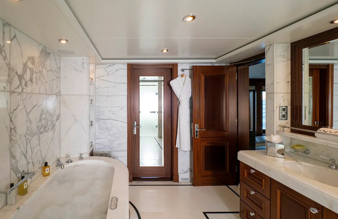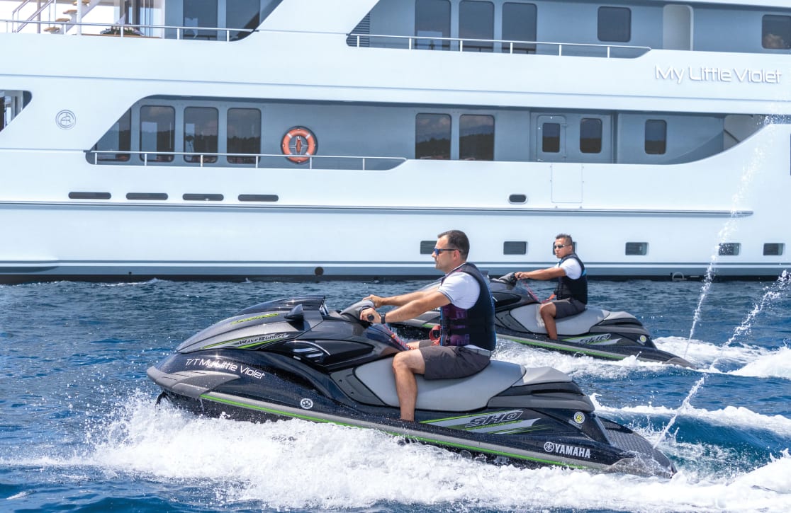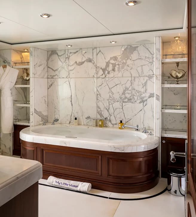 Retreat to one of My Little Violet’s five exquisite cabins, each a private haven of rest and relaxation. With space for 10 guests, the yacht features a master suite, a VIP cabin, two double cabins, and a twin cabin, all designed to offer a sanctuary of serenity. Awaken to the gentle rocking of the sea and the promise of another day in paradise, enveloped in the finest linens and surrounded by tasteful design. The attentive crew is always on hand to ensure that your stay is as comfortable as it is memorable.