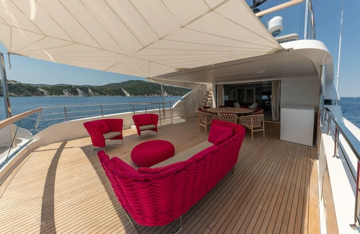 Accommodating up to six guests, My Way offers a serene retreat with its three elegantly appointed cabins. Wake up to the gentle sway of the sea in the master suite, or find solace in the VIP and twin cabins, each designed with meticulous attention to detail. Plush bedding and tasteful decor create a restful atmosphere, promising rejuvenating nights that prepare you for another day of exploration. The dedicated crew ensures your stay is seamless, attending to your needs while you revel in the intimate comfort of your floating haven.