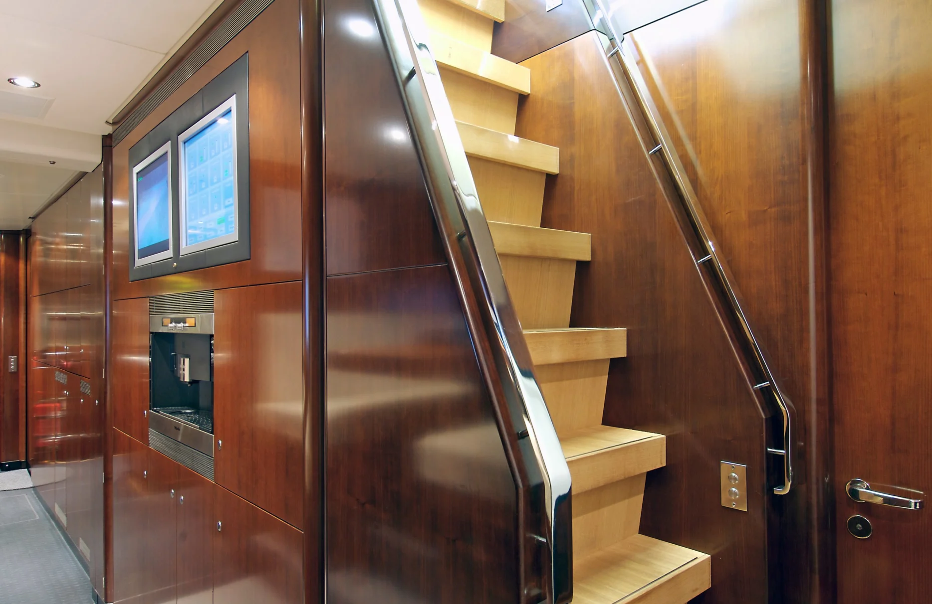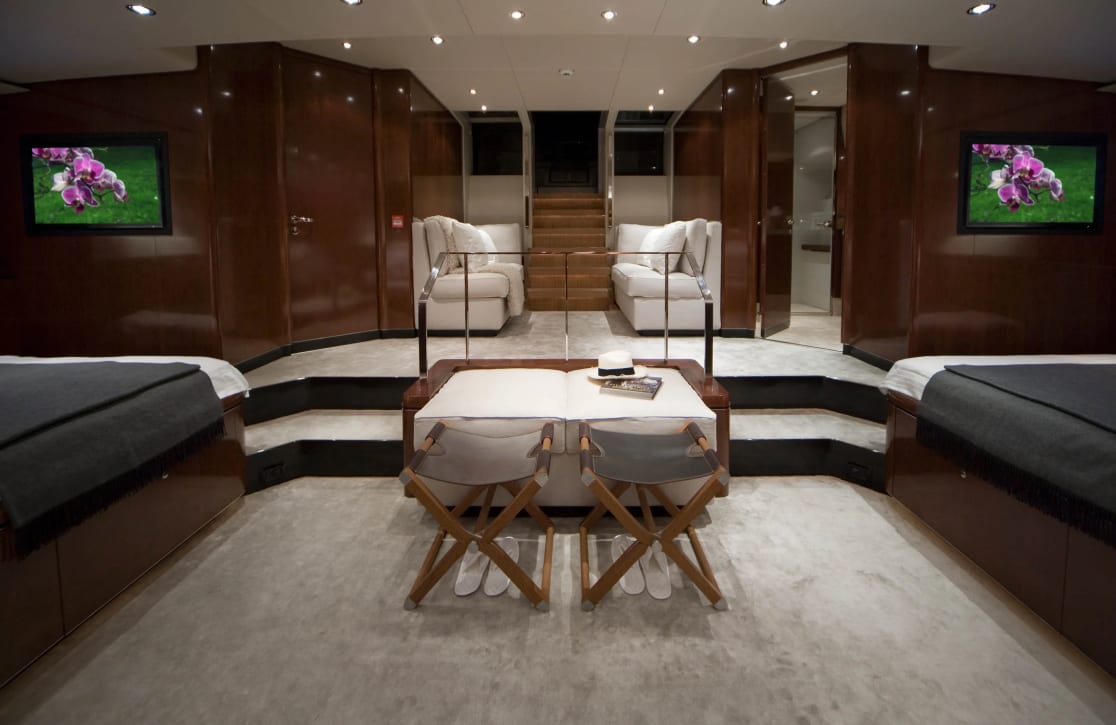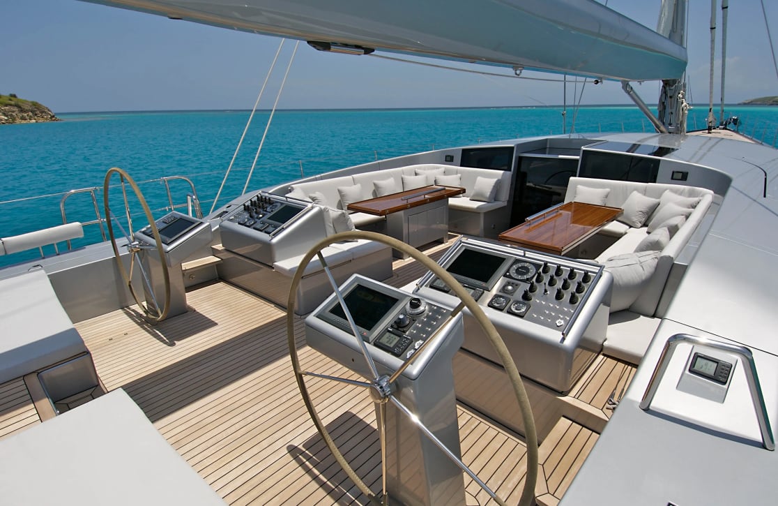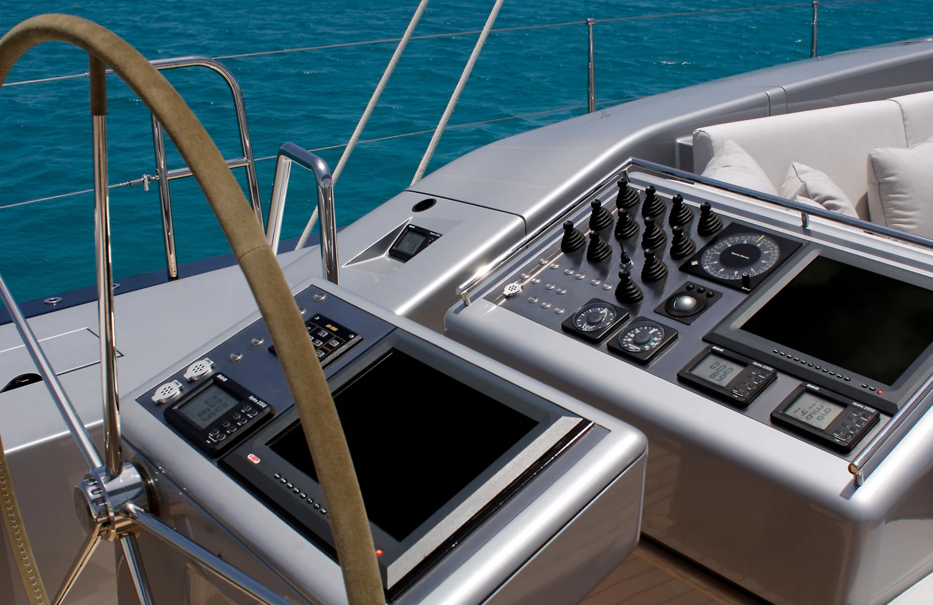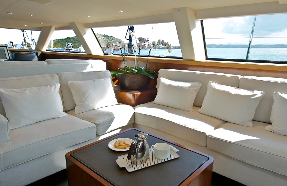 Mystere accommodates up to seven guests within four exquisitely appointed cabins, each offering a private retreat with the gentle lull of the ocean as your nightly serenade. Wake up to the soothing rhythm of the waves and sunlight filtering through elegant windows, setting the tone for a day of exploration and leisure. The owner’s suite, with its direct access to a private aft cockpit, offers a unique blend of privacy and open-air luxury, making mornings a memorable affair.