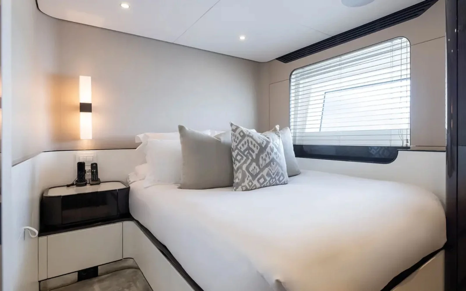 Life aboard Nemesis is an ode to comfort and elegance. Picture yourself reclining on the sun deck, savoring a gentle sea breeze as you lounge on plush sunpads. The deck jacuzzi beckons for a soothing soak, while an exterior bar stands ready to serve your favorite cocktail as the sun dips below the horizon. Whether enjoying a casual afternoon BBQ or staying connected with Wi-Fi amidst the serenity of the ocean, Nemesis caters to your every desire. Foredeck seating offers a private nook for intimate conversations or quiet reflection, while the swimming platform invites you to dip into the azure waters at your leisure.