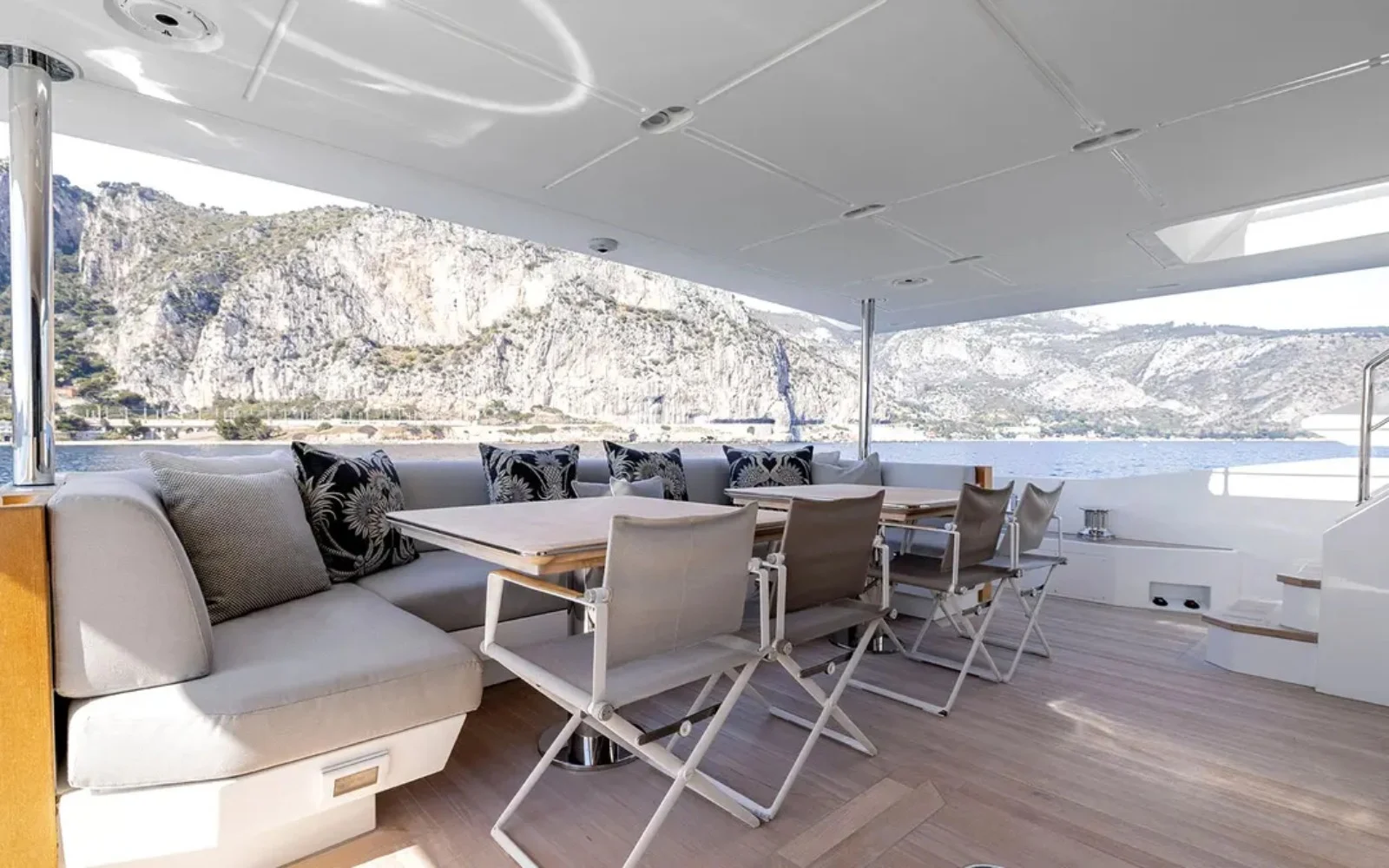 Aboard Nemesis, life unfolds in luxurious harmony, where each day is a new discovery. From the moment you step onto her sun-kissed decks, you are enveloped in an atmosphere of refined leisure. Her five opulent cabins accommodate up to 10 guests, providing an intimate retreat after a day of exploration. The attentive service of a dedicated crew of five ensures your experience is seamless, allowing you to immerse yourself fully in the pleasures of life at sea.