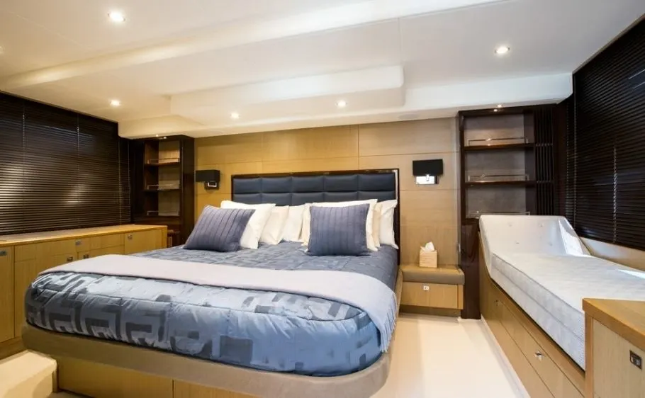 Embark on an unforgettable journey aboard Never Enough, a 20-meter motor yacht crafted by the renowned British shipyard Princess in 2014. This vessel masterfully combines style and speed, offering a sophisticated escape as you navigate the enchanting locales of the Mediterranean. From the allure of Cannes to the charm of the French Riviera, Never Enough invites you to savor the art of yachting while surrounded by the sea’s unmatched beauty. With a cruising speed of 22 knots, feel the thrill of exploring secluded coves and tranquil bays, perfect for overnight anchorage and serene evenings under the stars.