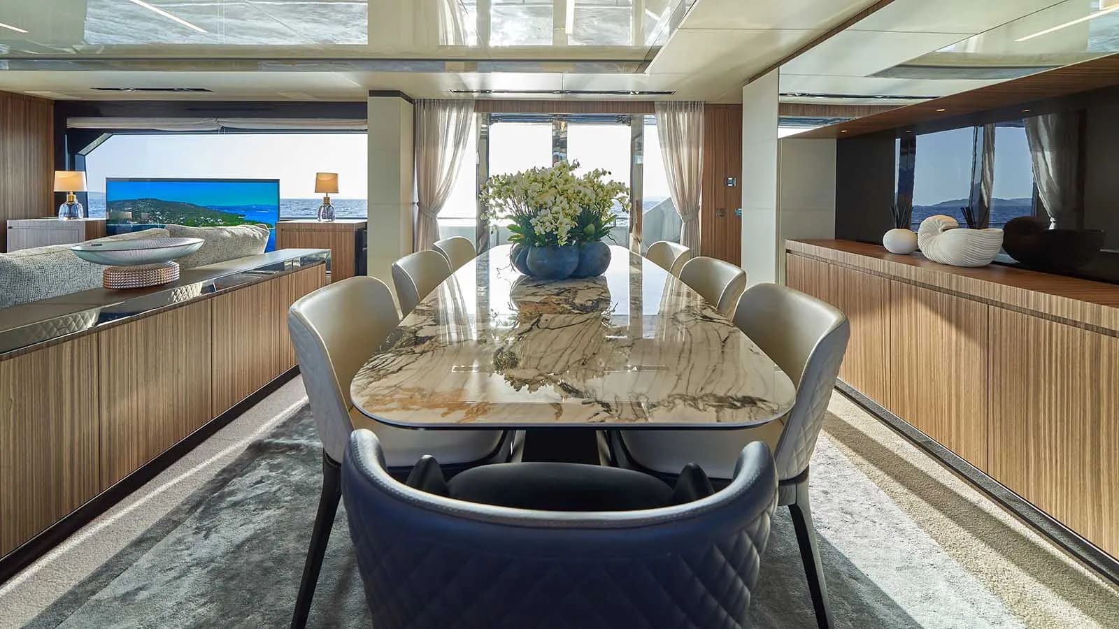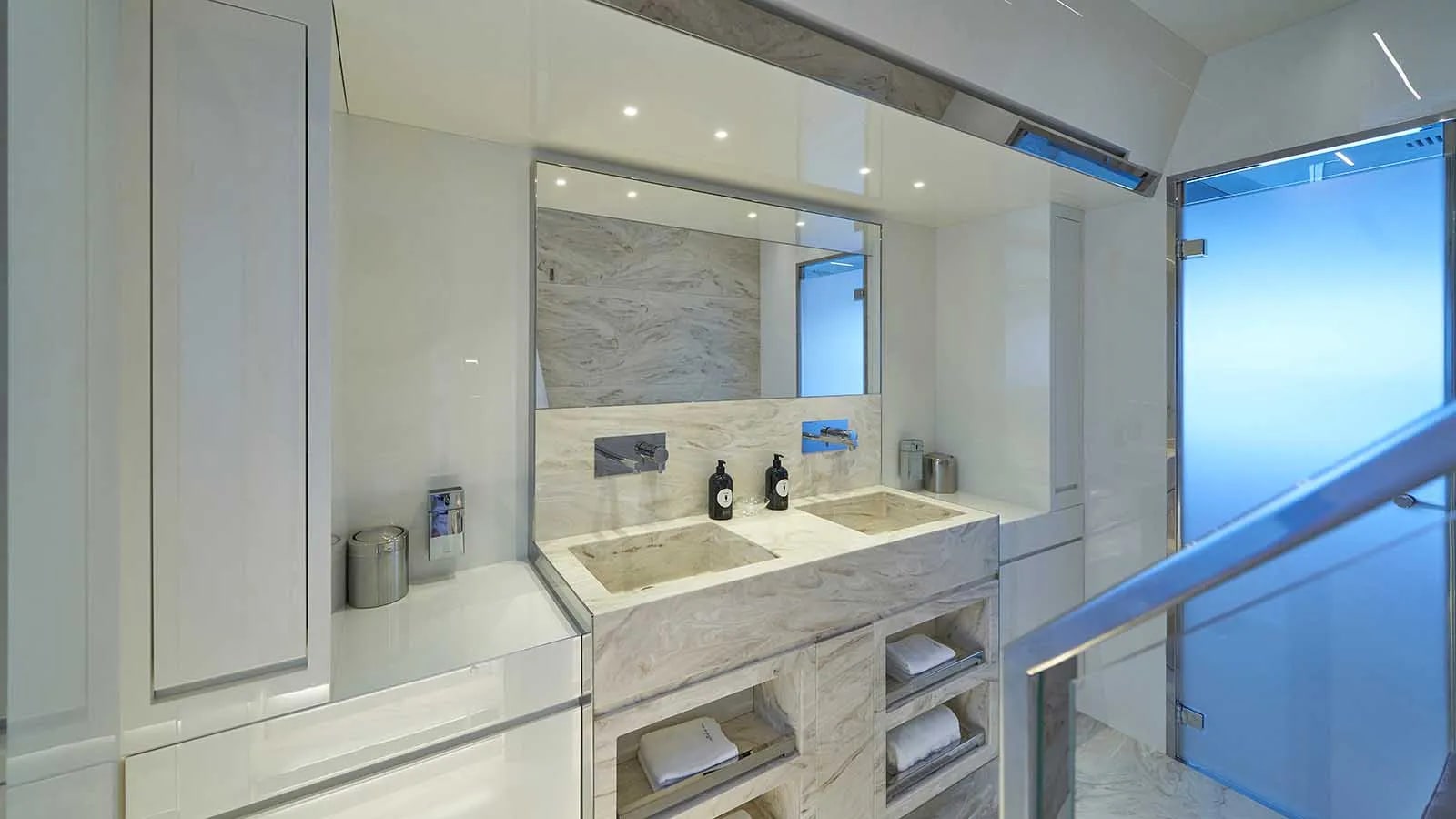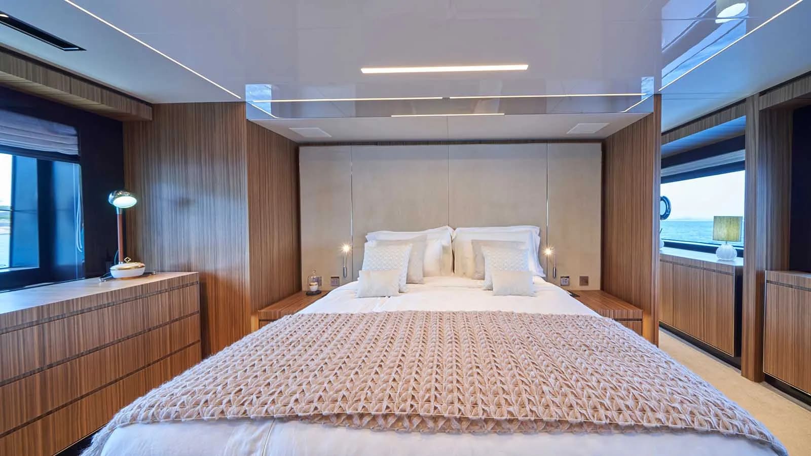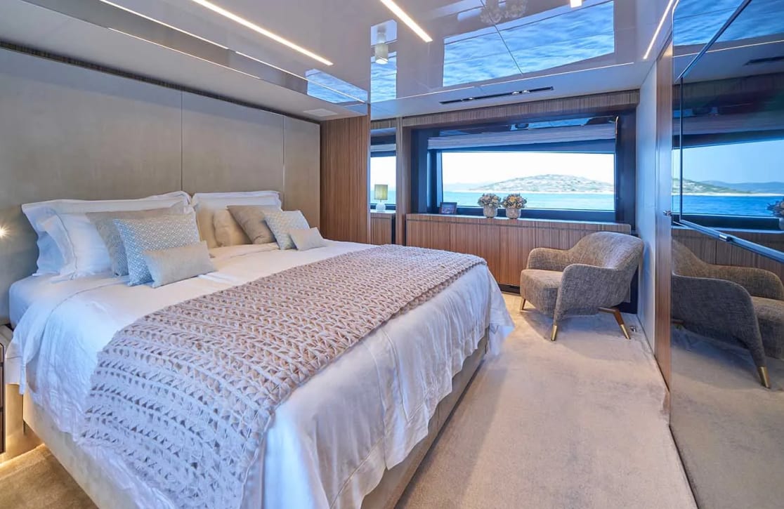 Nikita accommodates eight guests across four elegantly appointed suites, each offering a sanctuary of comfort and privacy. The master suite, two double cabins, and a twin cabin all showcase modern Italian design, where natural light floods through large windows, creating a serene atmosphere. Wake up to the gentle sway of the yacht and the promise of another day in paradise, with every need anticipated by the attentive crew.