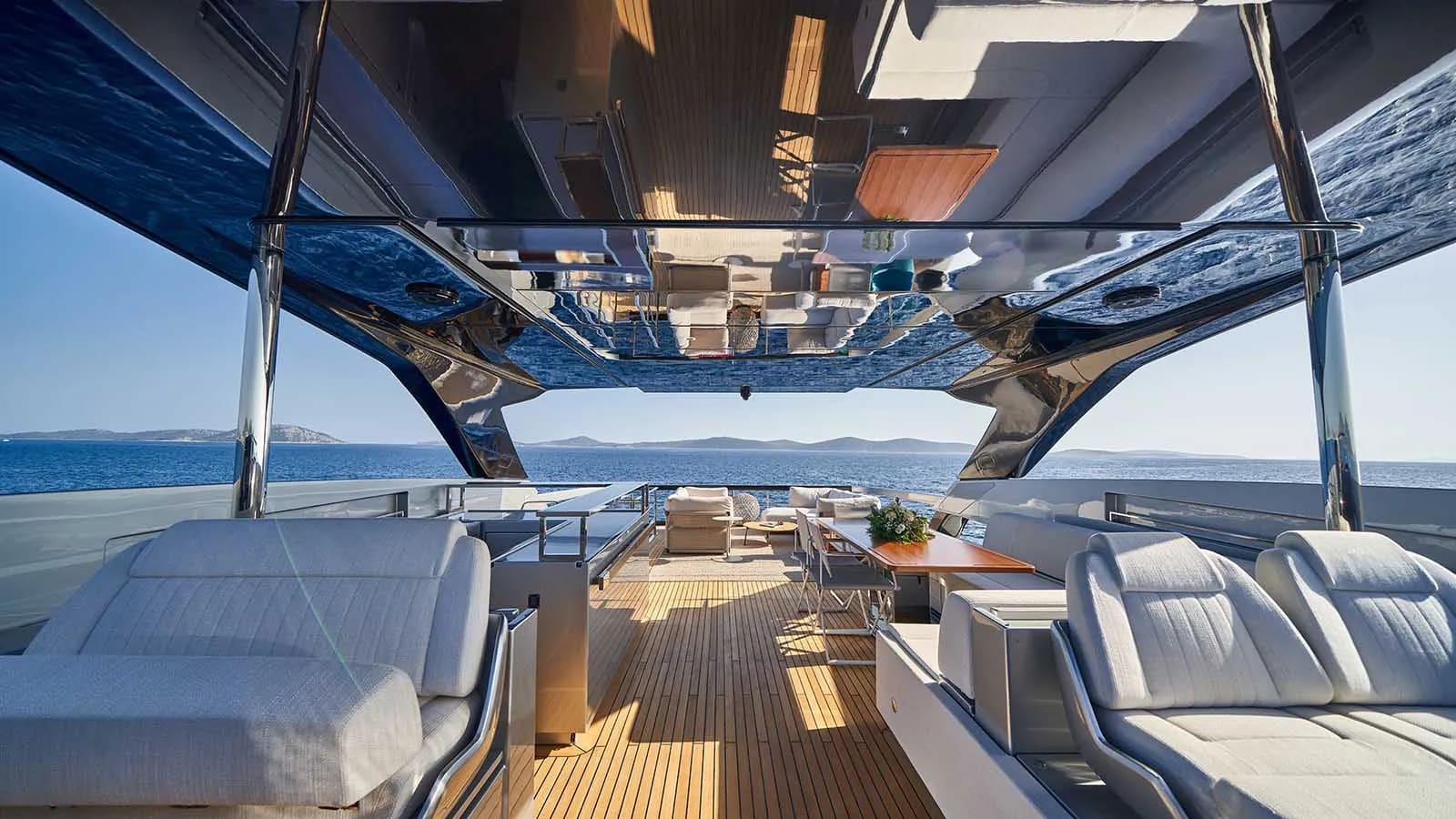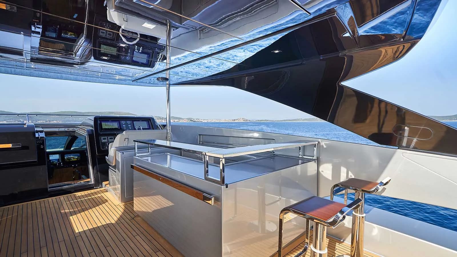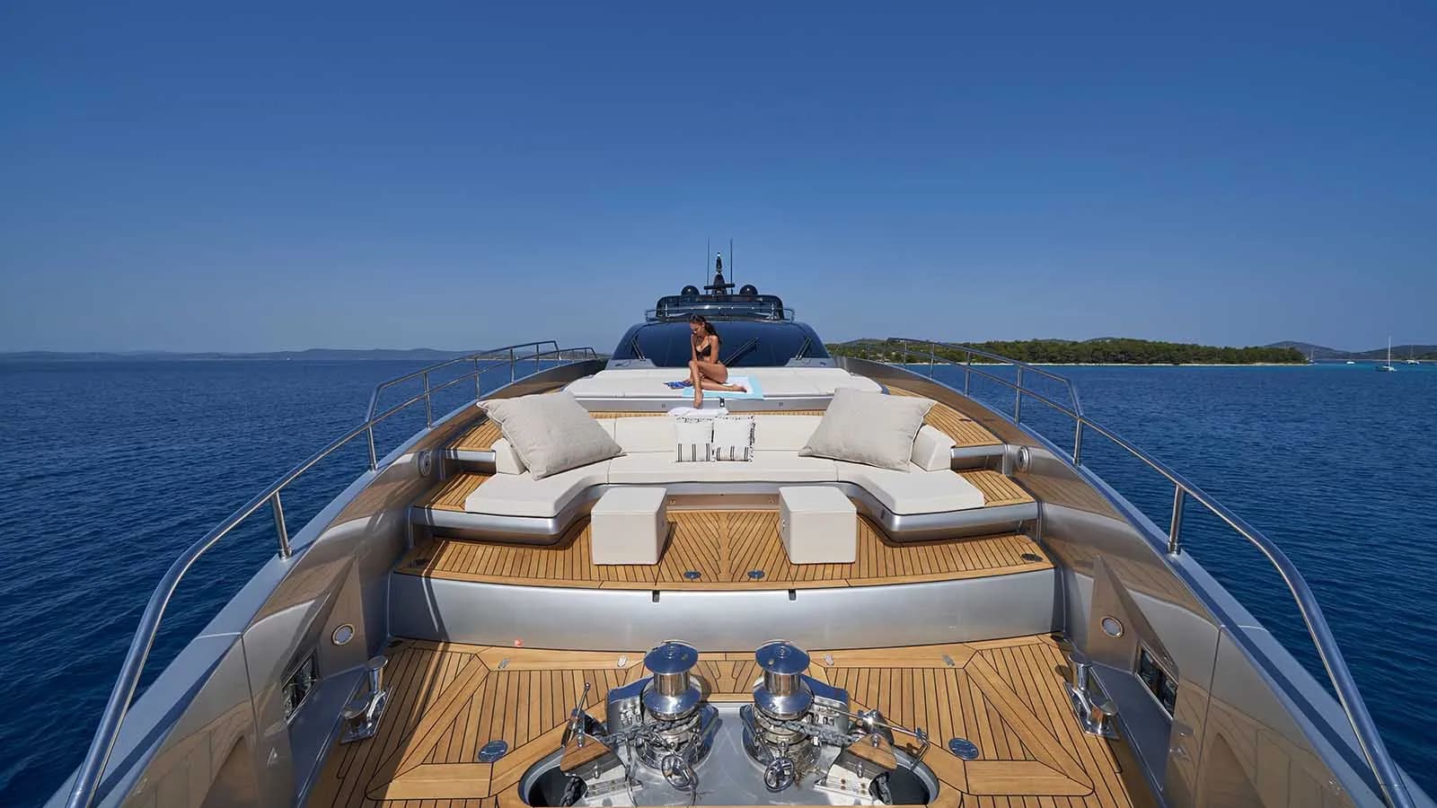 Aboard Nikita, every day is a celebration of style and relaxation. Her expansive outdoor spaces invite you to unwind, whether enjoying a refreshing outdoor shower after a swim or sipping a cocktail at the exterior bar. The gym offers a space to invigorate your mornings, while the beach club beckons for sun-drenched afternoons. As the sun dips below the horizon, gather with friends on the foredeck seating area, enveloped by the soothing ambiance of the Mediterranean.