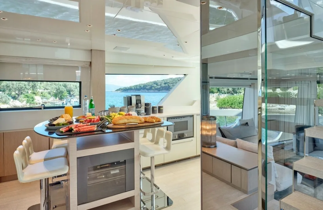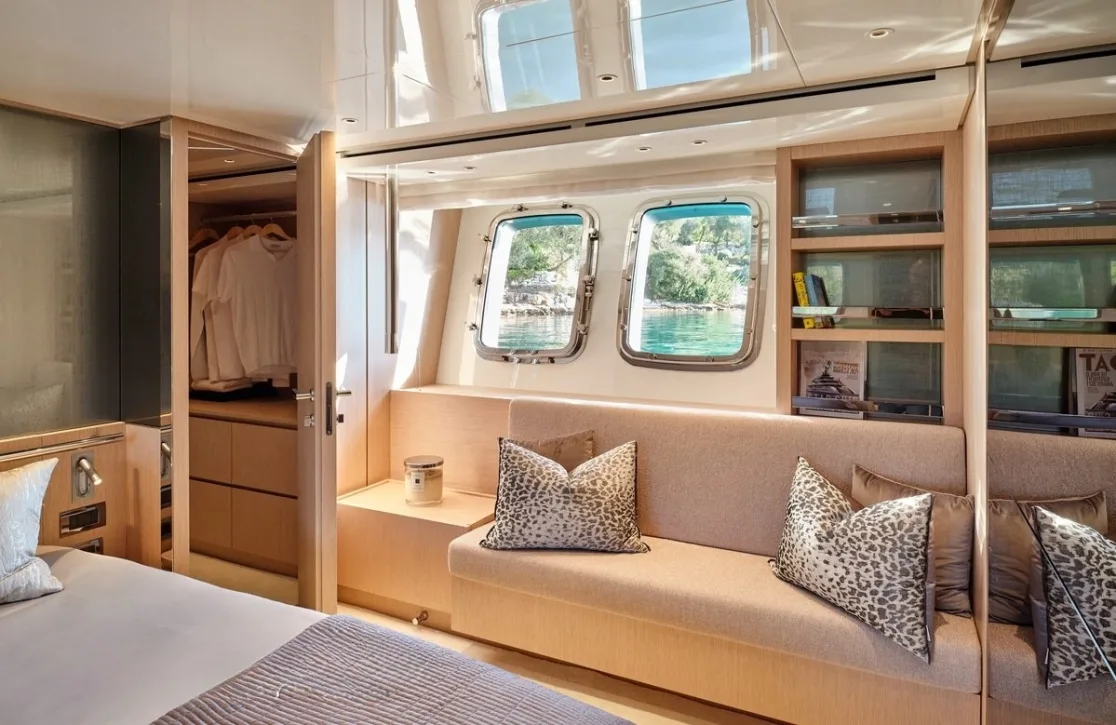 Imagine a week spent aboard, where each day unfolds with new discoveries both on the water and ashore. The seamless blend of indoor and outdoor spaces provides endless opportunities for relaxation and entertainment. Whether you’re exploring hidden bays with the yacht’s shallow draft of just under 5 feet or savoring exquisite moments on the sun-drenched deck, Nirvana promises an unforgettable escape into the blue.